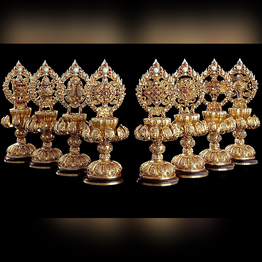 Khi các biểu tượng cát tường này xuất hiện tại bất kỳ nơi nào thì nơi đó trở thành sự gia trì hoàn hảo. Tám tướng cát tường khi được vẽ kết hợp lại với nhau thành một tổng thể được gọi là trí tuệ Bản Lai, chính là hóa thân Phật dưới hình thức biểu tượng cát tường để ban gia trì lợi ích chúng sinh.
