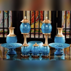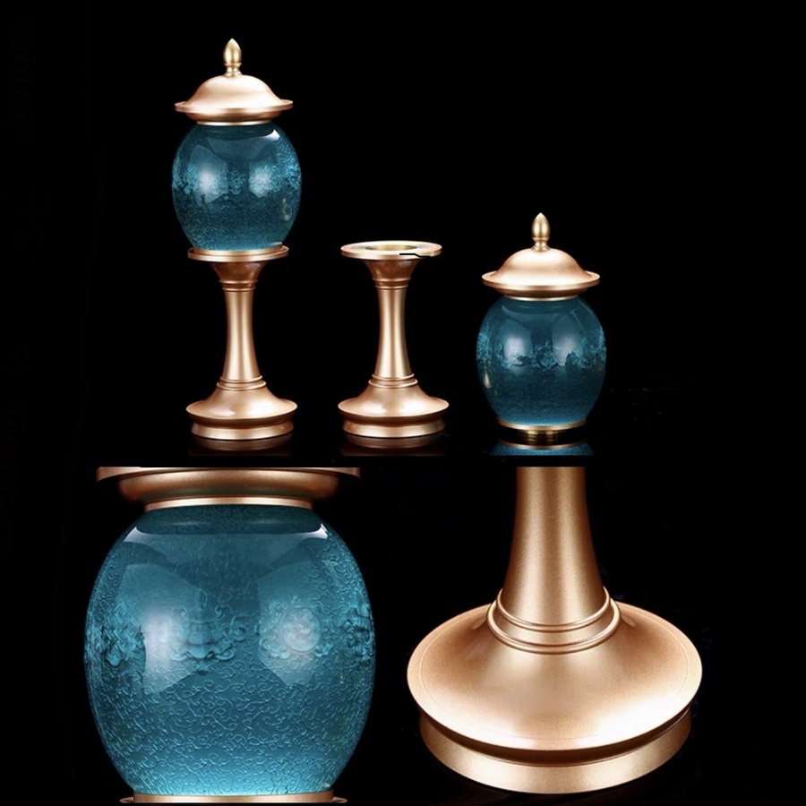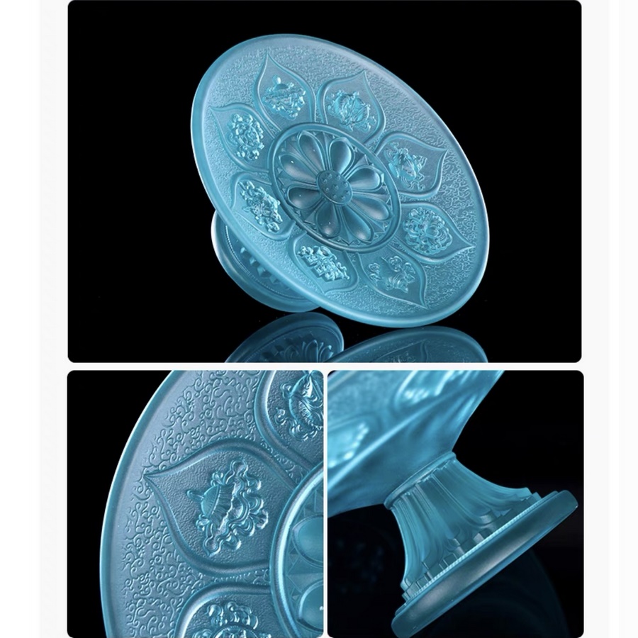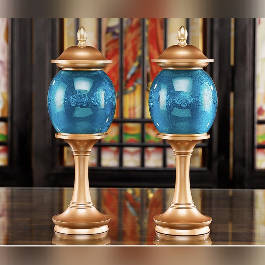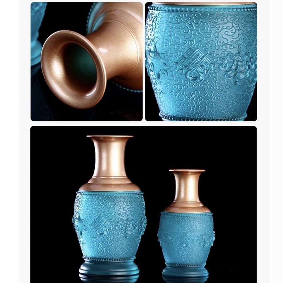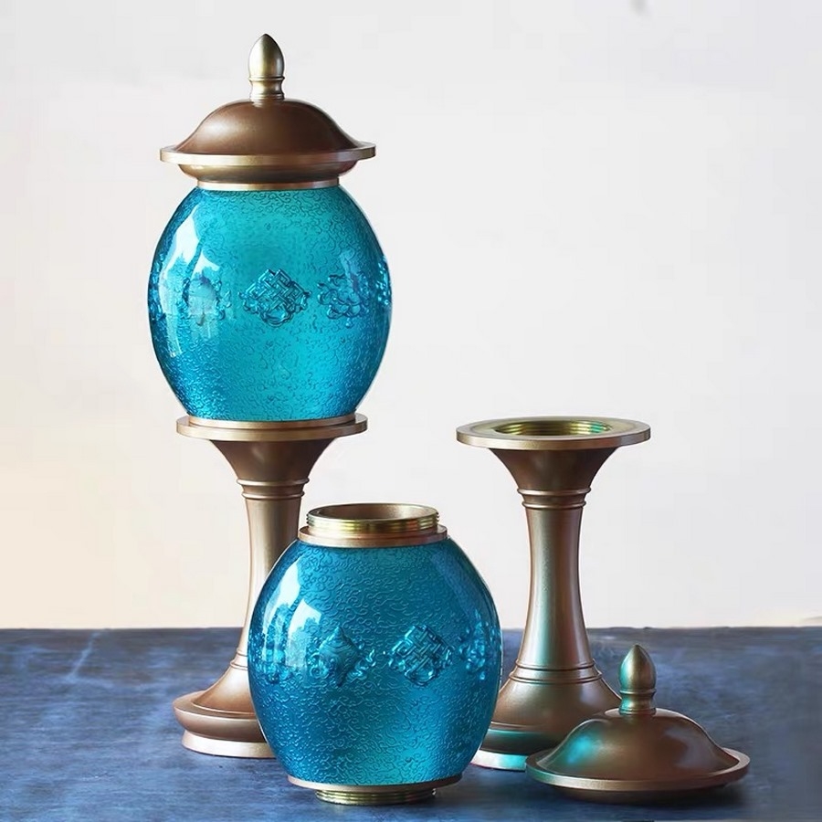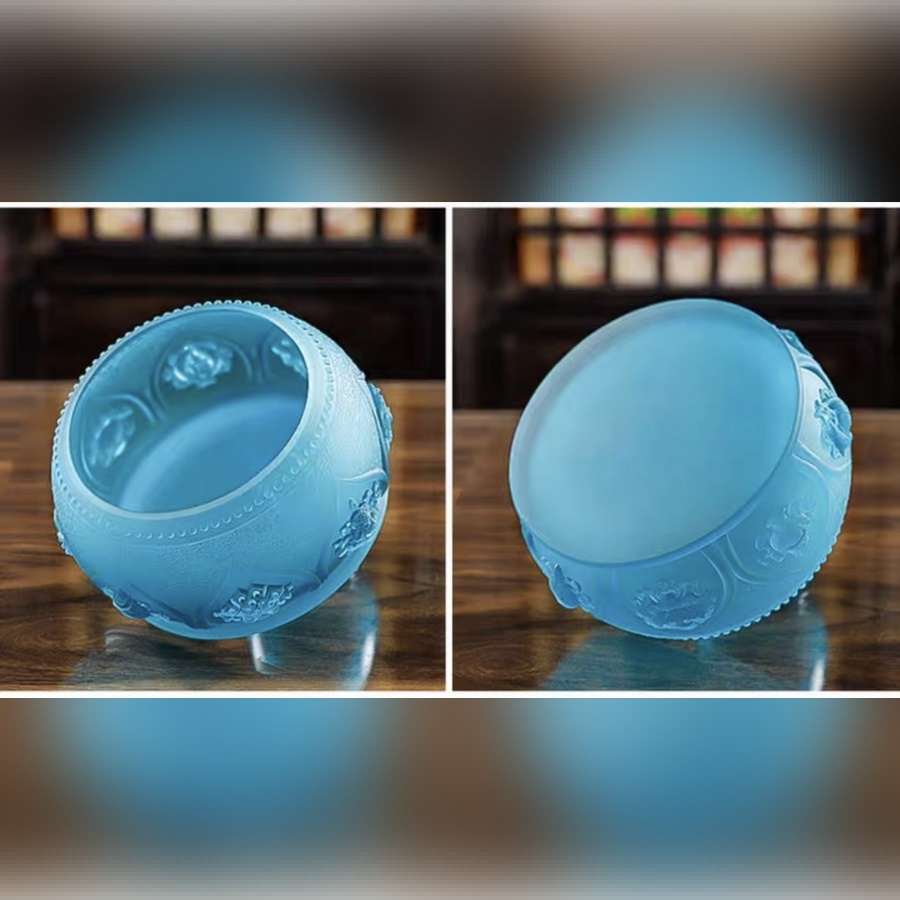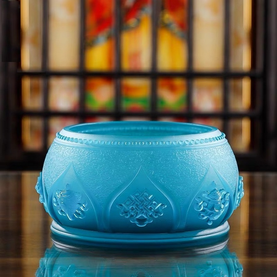 - Chất liệu: Ngọc liuli nhân tạo màu xanh liuli Dược Sư, hoa văn Bát Kiết Tường