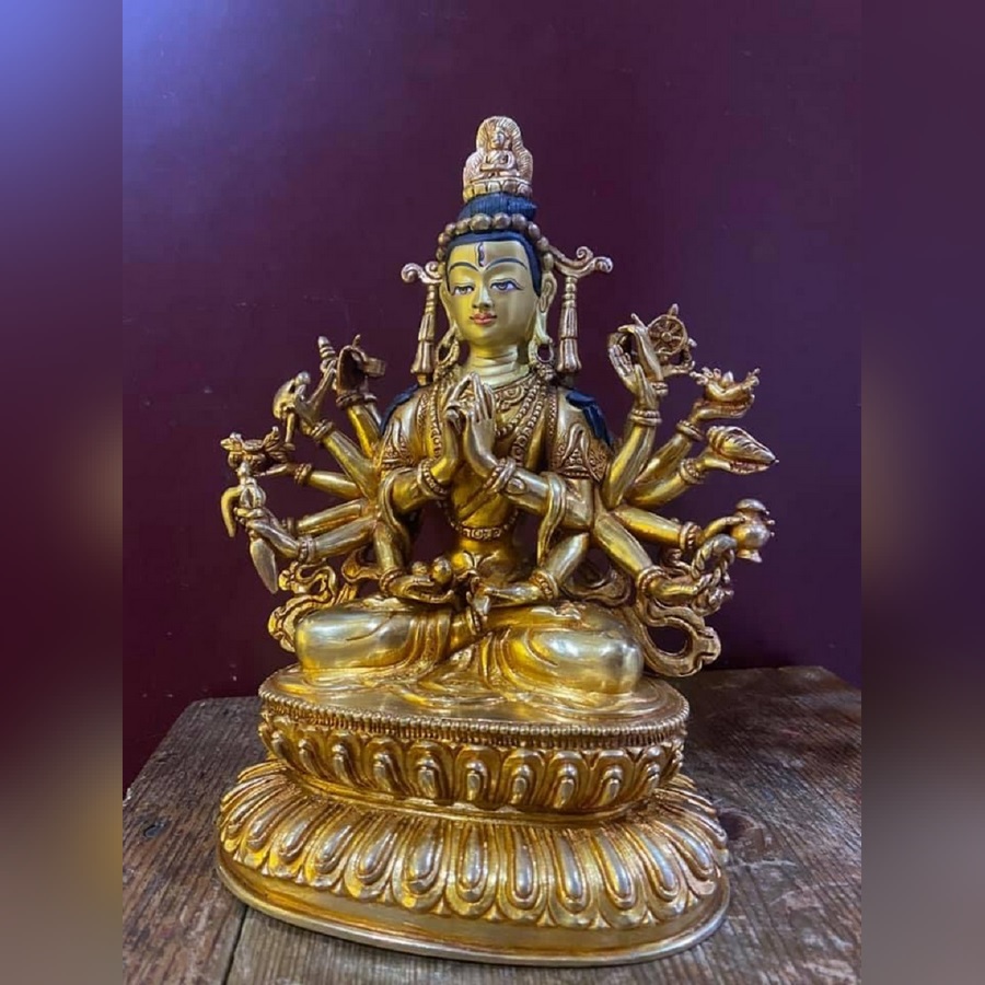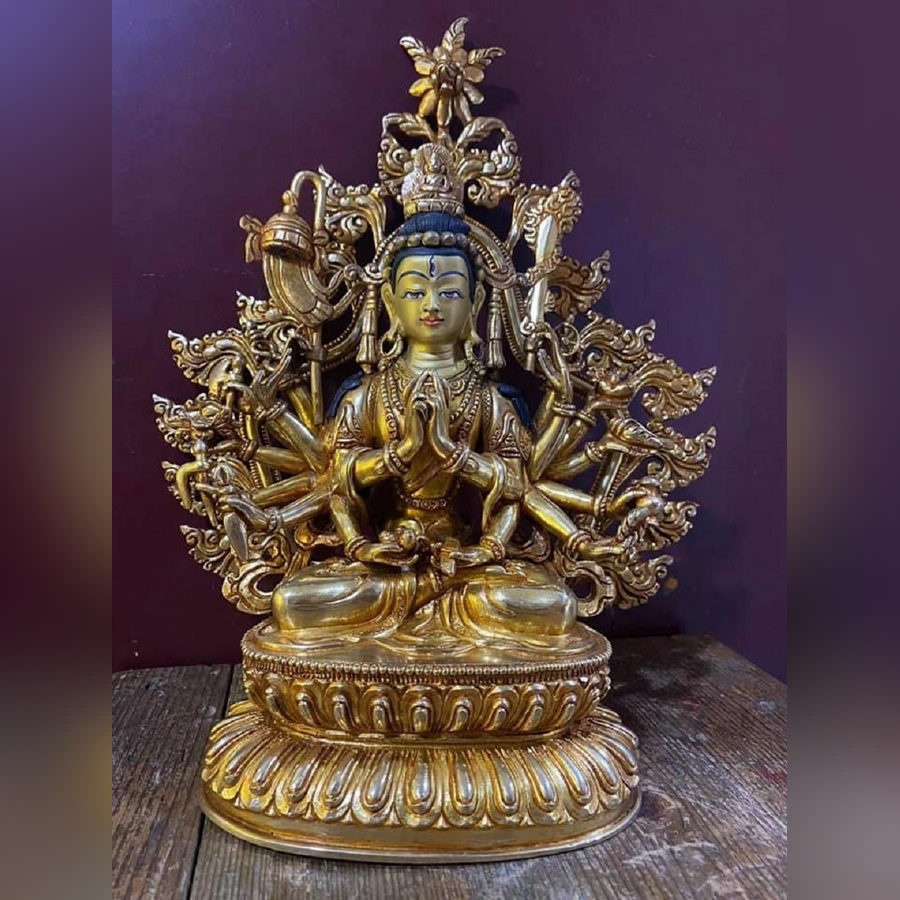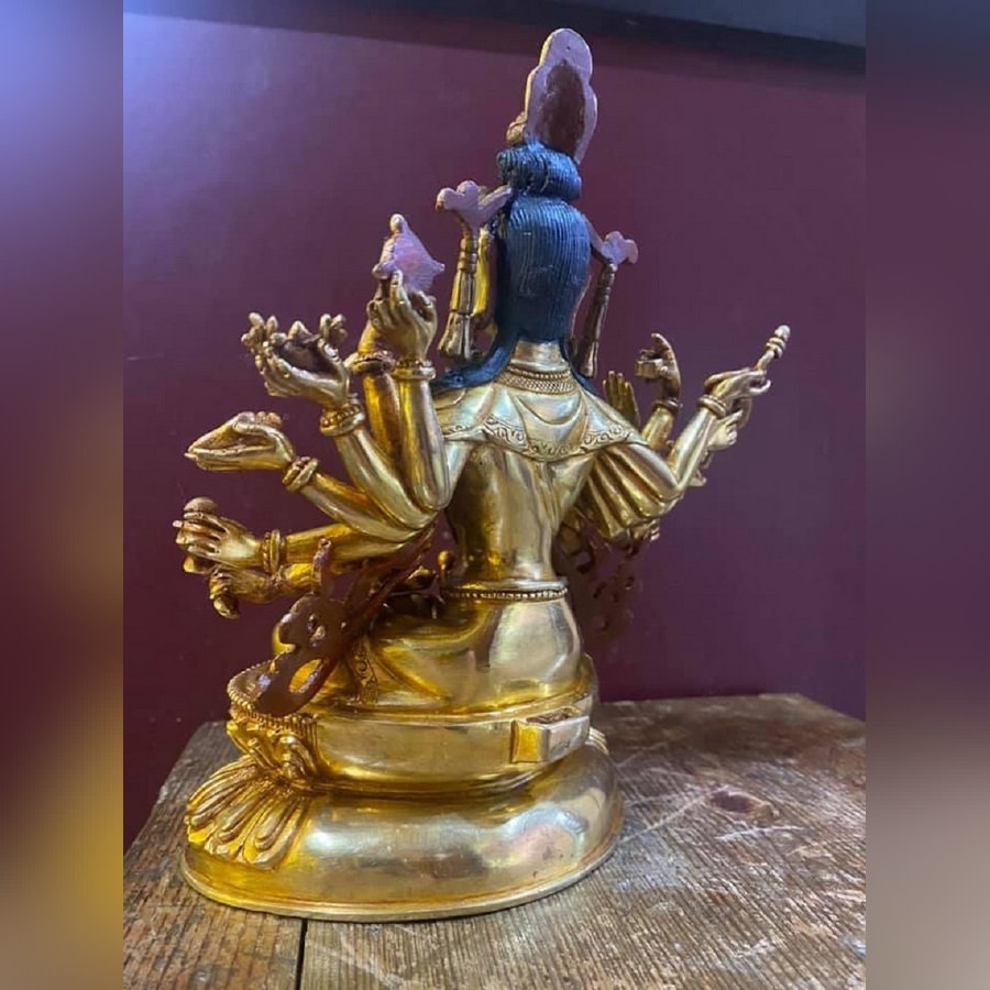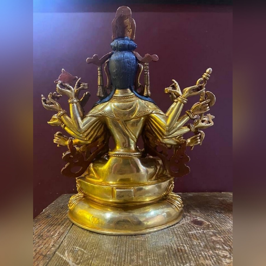Toàn thân của Ngài có mười tám cánh tay, mỗi bên chín cánh.
