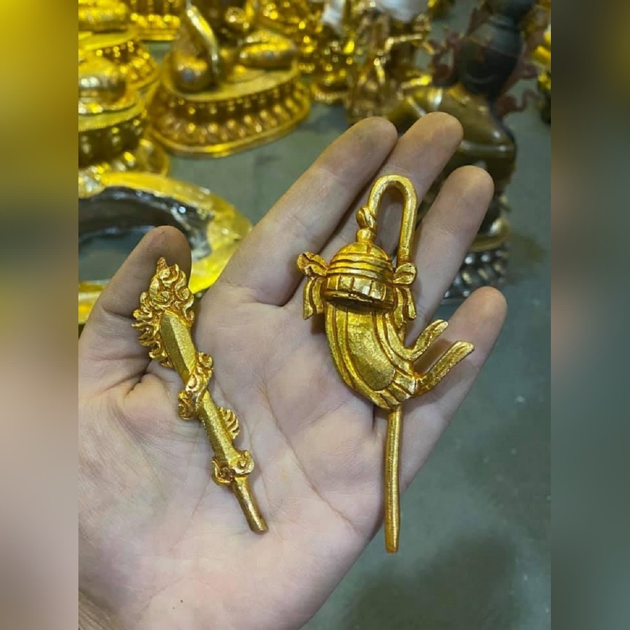 Tay trái thứ bảy cầm pháp loa, còn tay mặt cầm cái thiết câu.