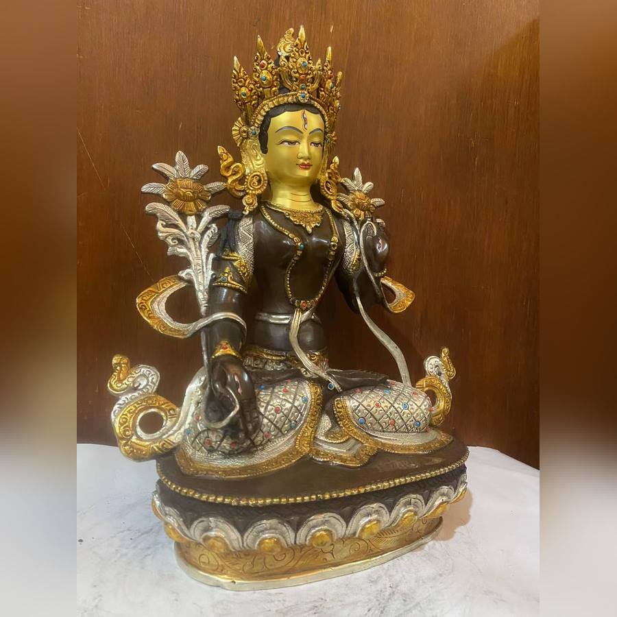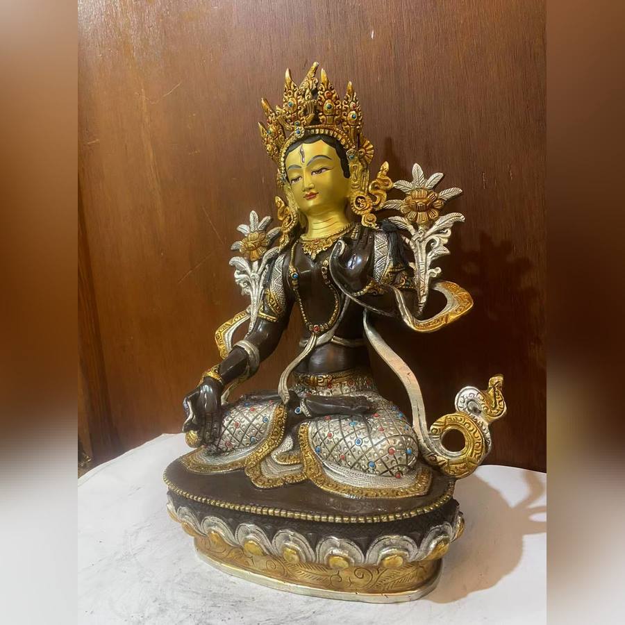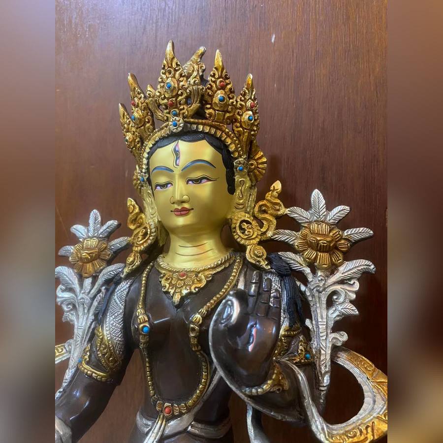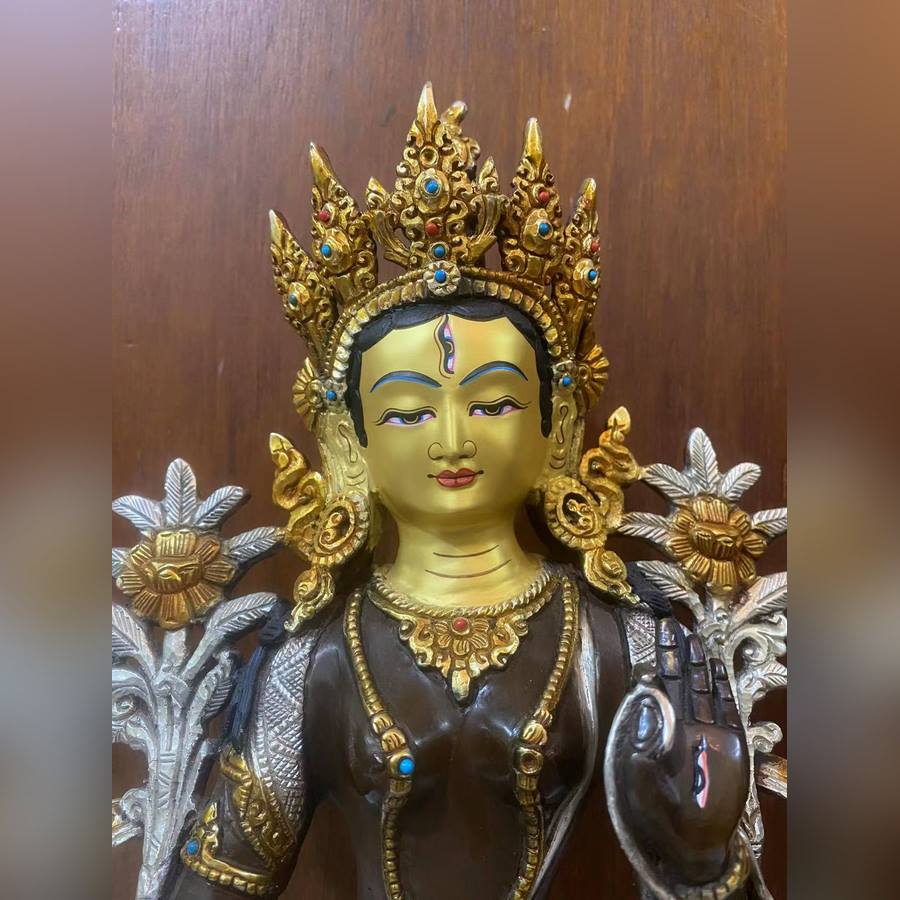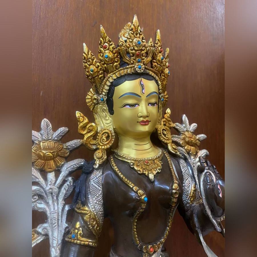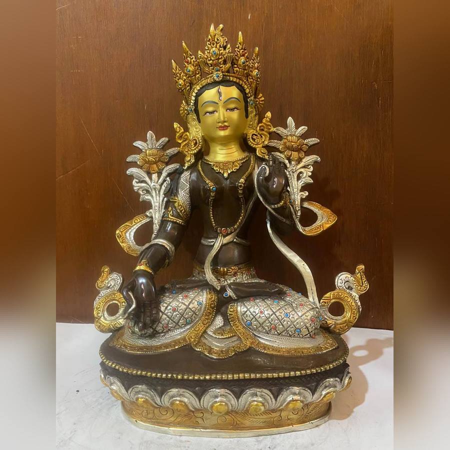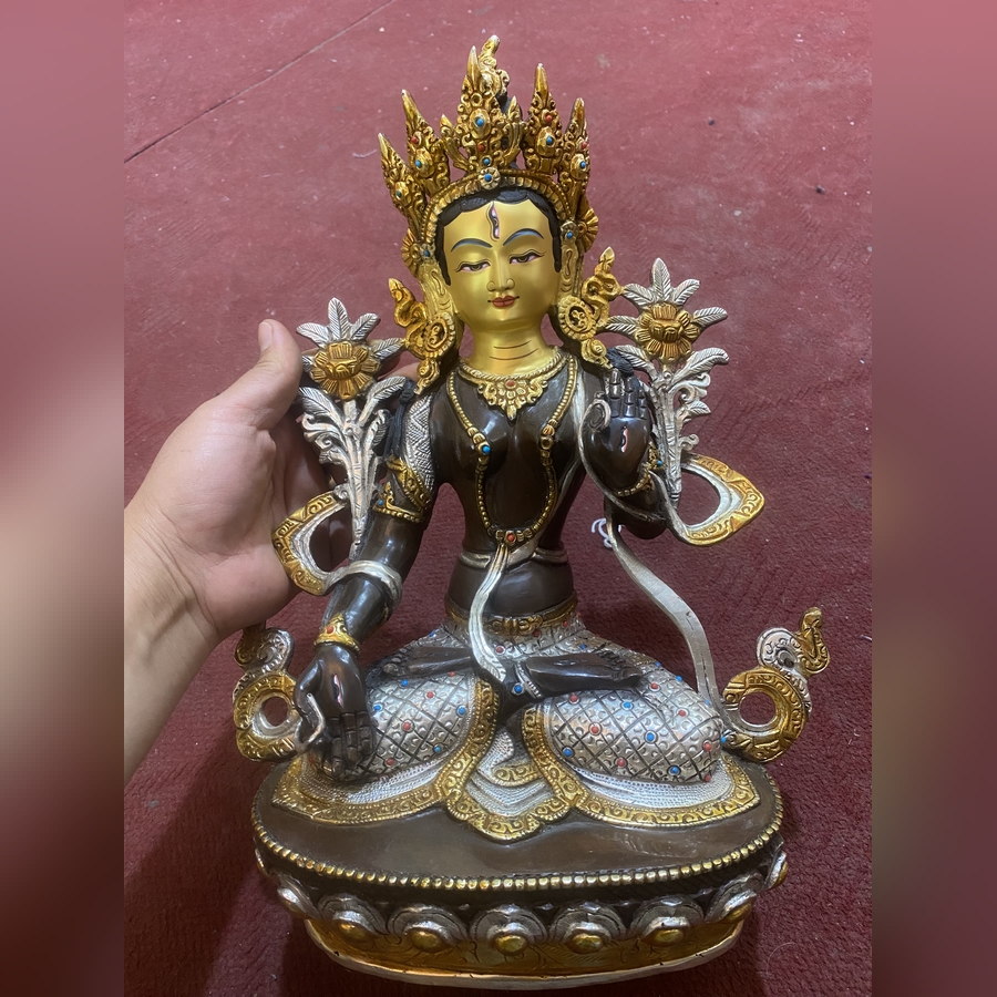 - xuất xứ: Nepal, bằng đồng mạ vàng bạc, cao 35cm