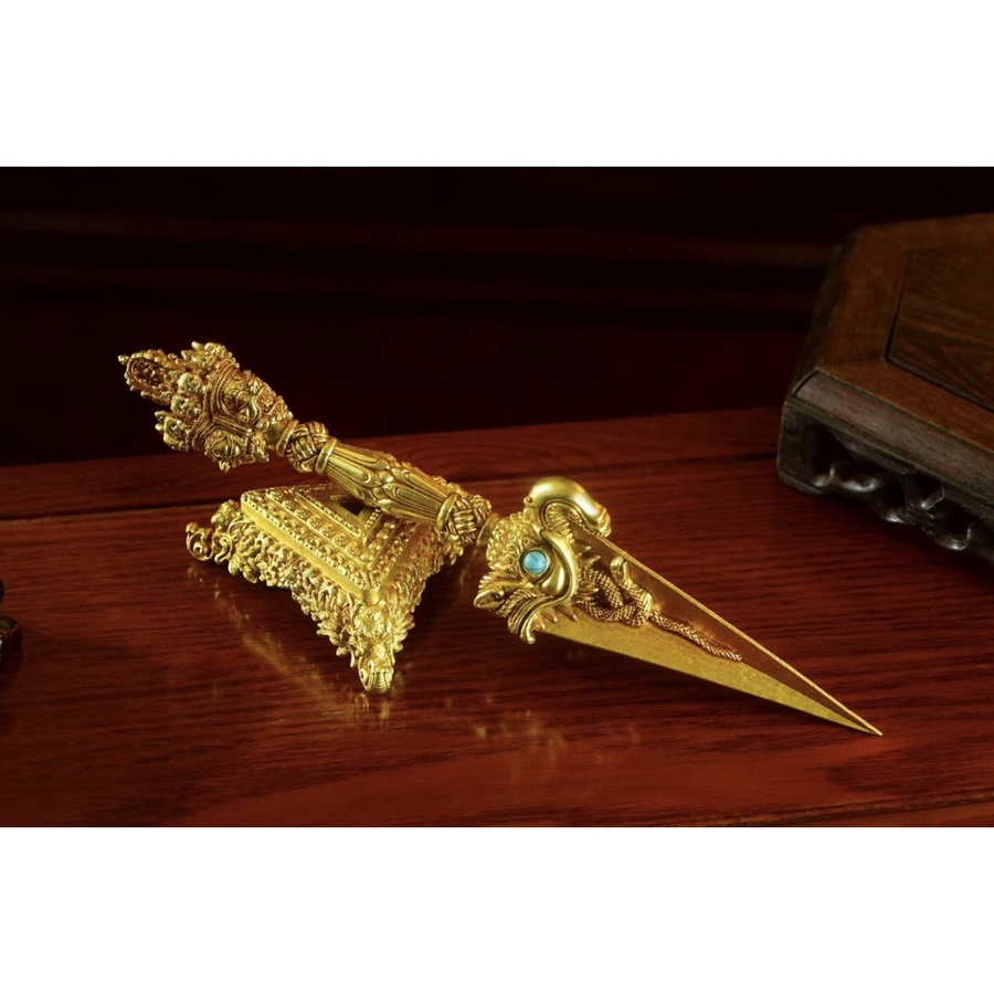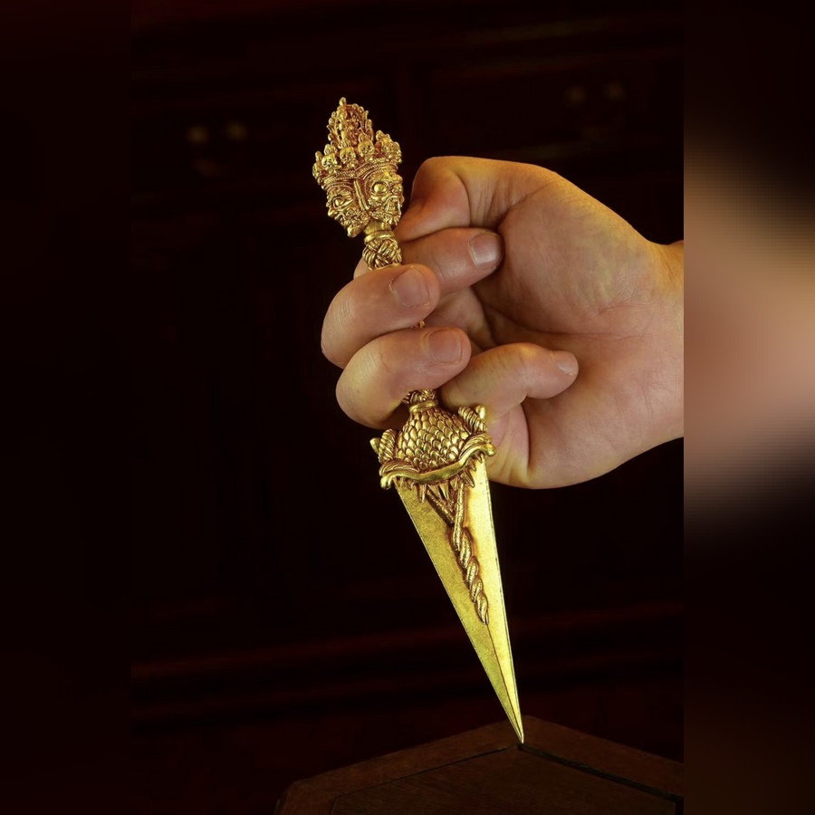 (Phurba) hay còn gọi là Dao Kim Cương, là một loại pháp khí được dùng để tu chứng Phật Pháp. Dao Phurba gồm 3 phần: phần đỉnh thông thường là cắt nửa chày Kim Cương, đại diện cho tam mật hoặc đầu Phật, đầu ngựa (Mã Đầu Minh Vương). Tiếp theo đến 3 mặt tướng phẫn nộ, tượng trưng cho tam mật và tam độc. Cán dao được trang trí dây cát tường kết, tiếp theo là hoa sen. Ba mặt của thân dao được trang trí bằng đôi rồng rắn đại diện cho 6 ba la mật. Lưỡi dao gồm 3 mặt mũi sắc nhọn biểu trưng cho chặt đứt tam độc tham – sân – si.