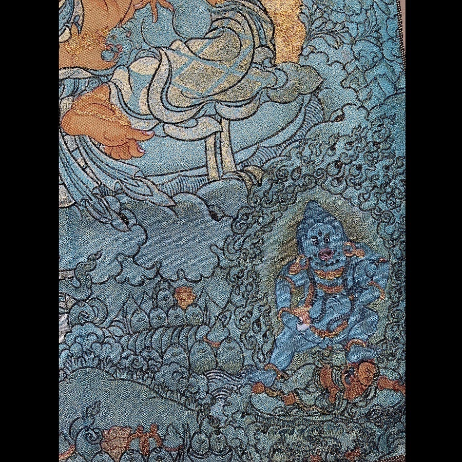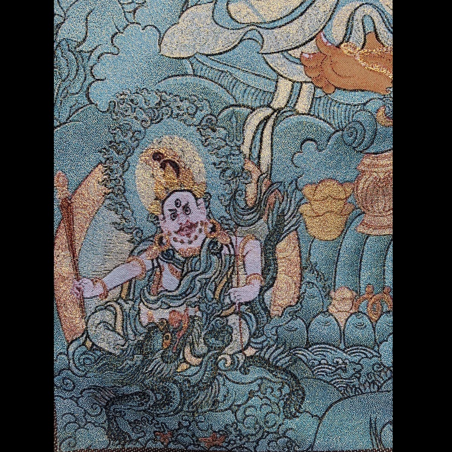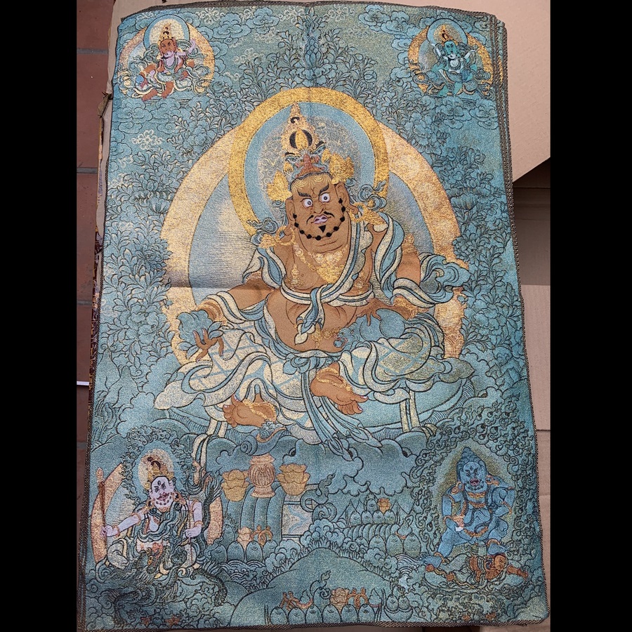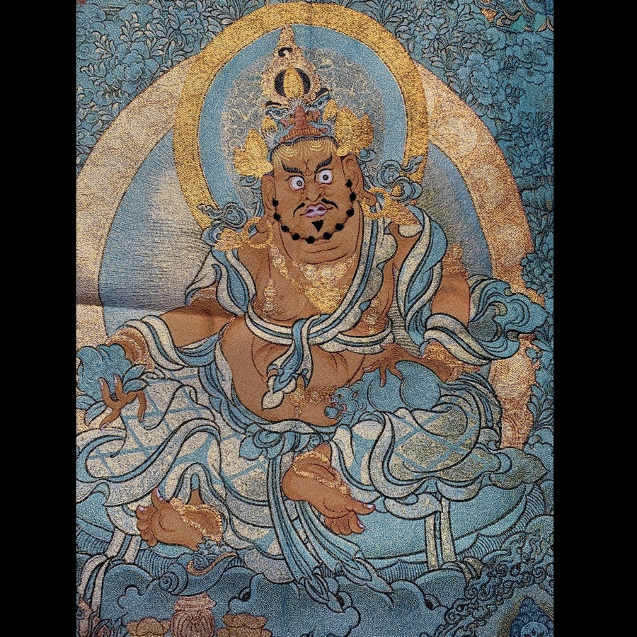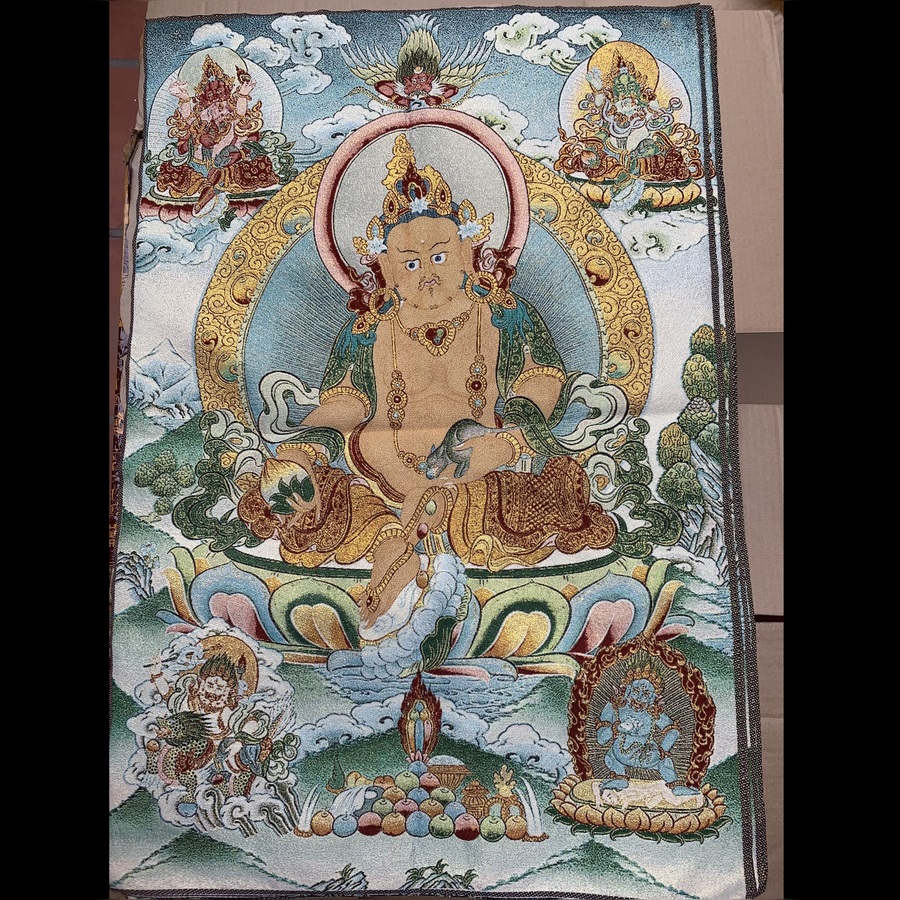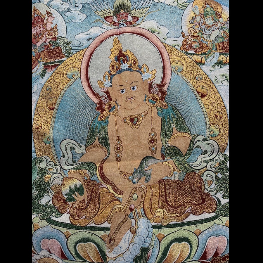 Đức Jambala (còn được gọi là Dzambala) là vị thần Tài Bảo và là một thành viên của gia đình Châu Báu (Bảo Bộ). Ngài được tin tưởng là một hóa thân của Quan Thế Âm, vị Phật của Lòng Bi Mẫn, hiện lộ là vị Phật ban phát tài bảo. Về sự hóa hiện của Quan Thế Âm, câu chuyện được khởi nguồn từ Lama Atisha, là một Lama đức cao vọng trọng của dòng truyền Gelug, khi ngài đang bộ hành ở Bồ Đề Đạo Tràng thì gặp một cụ già đang chết vì đói. Lama Atisha rất buồn vì sự thống khổ của cụ già. Lama Atisha lại không có dù chỉ là một chút thức ăn để bố thí cho cụ già, vì thế nên ngài lập tức cắt thịt của ngài để bố thí cho cụ già. “Làm sao tôi có thể ăn thịt của một vị tăng?” cụ già từ chối ăn miếng thịt đó. Lama Atisha đặt miếng thịt xuống, cảm thấy buồn và vô dụng quá thì một ánh sáng đột nhiên xuất hiện trước ngài. Đó là Thiên Thủ Thiên Nhãn Quan Thế Âm Bồ Tát, nói với Atisha: “Ta sẽ hóa hiện thành Jambhala, vị Phật của Tài bảo nhằm giúp đỡ những chúng sinh đau khổ. Ta sẽ làm vơi đi sự nghèo khổ để họ sẽ không còn bị sao lãng khỏi thực hành về thiện tâm.”
