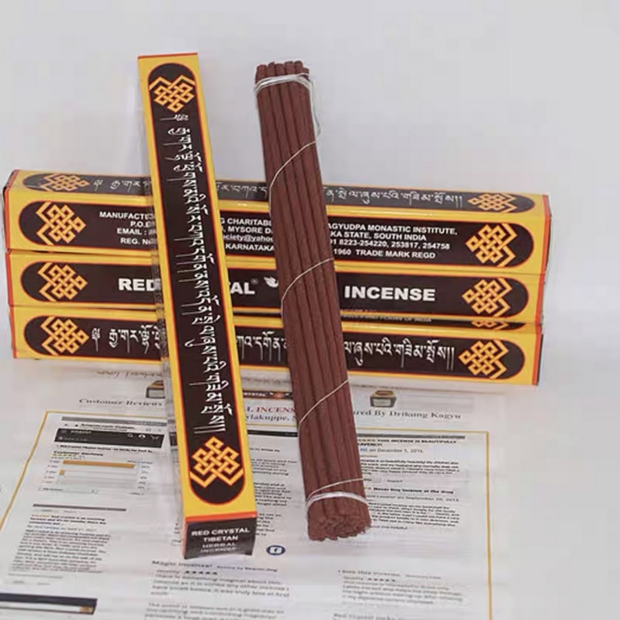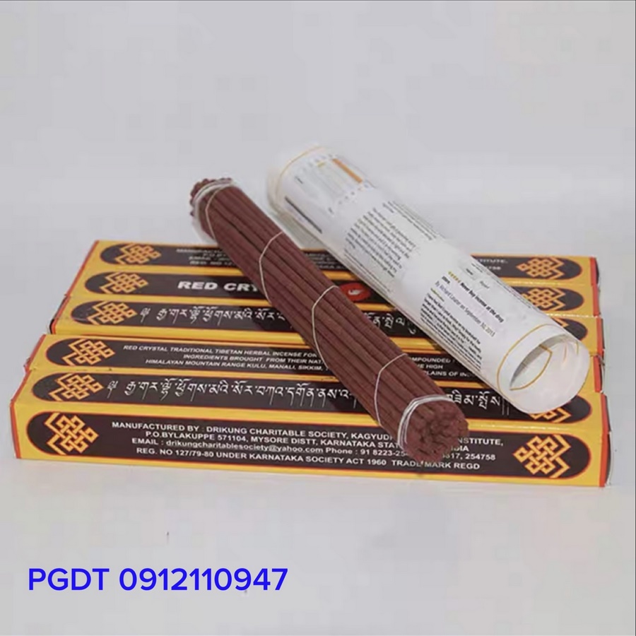 Red crystal : hương (nhang) thảo mộc tây tạng truyền thống dành cho thiền định. Được tuyển chọn nguyên liệu cẩn thận từ 23 loại thảo mộc thu hái từ nơi mọc hoang dã bản địa ở Himalaya , rặng núi Kulu Manali , Sikkim, tibet , nơi rừng và bình nguyên Ấn Độ. Làm tại Tu Viện Kaguydpa Monastery Ấn Độ
