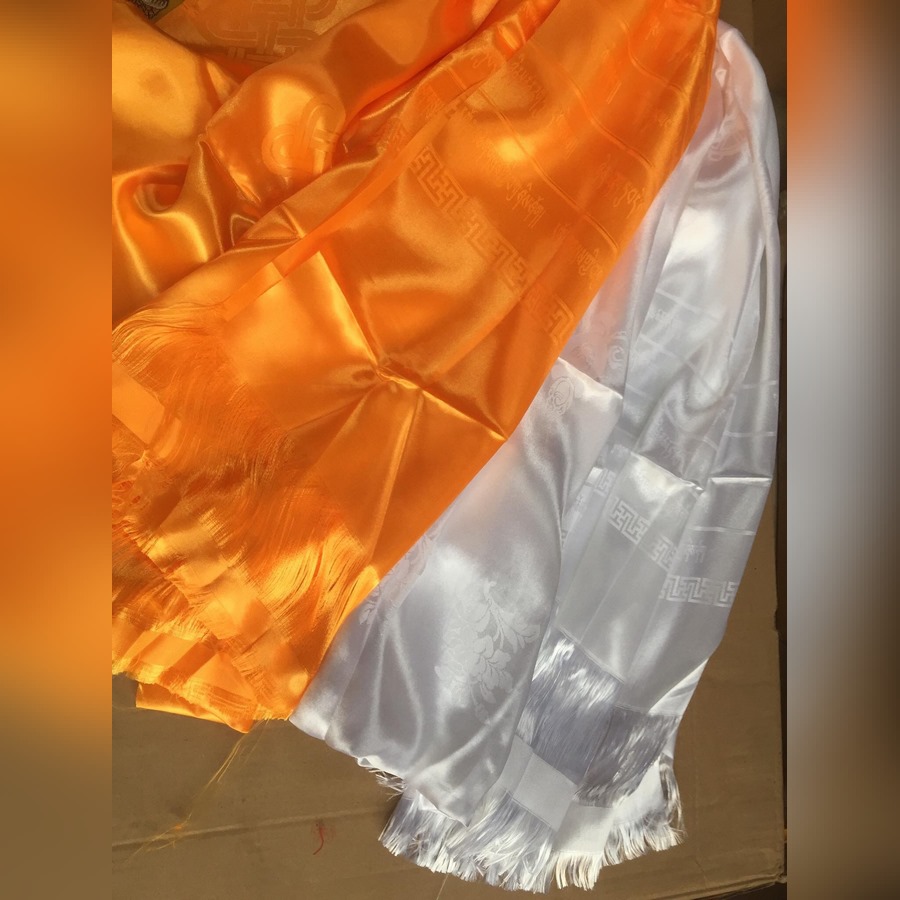 Khăn Khata 8 biểu Tượng Cát Tường in màu ngũ sắc rất đẹp dùng để cúng dường và nhận ban phước từ những vị Rinpoche.