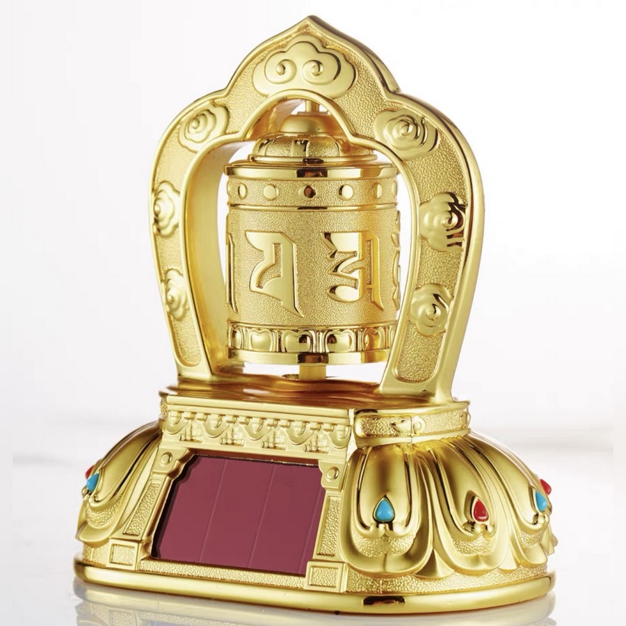 - chạy bằng năng lượng mặt trời hoặc lắp pin. nếu ánh sáng của đèn bàn mạnh chiếu vào thì kinh luân cũng tự quay