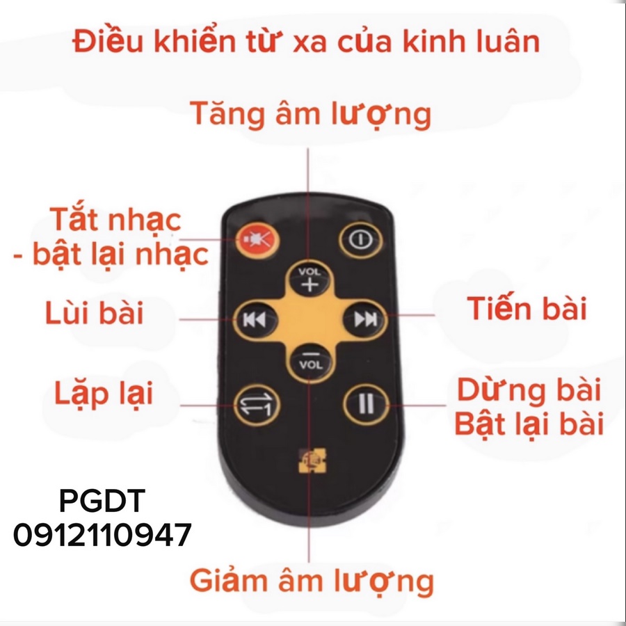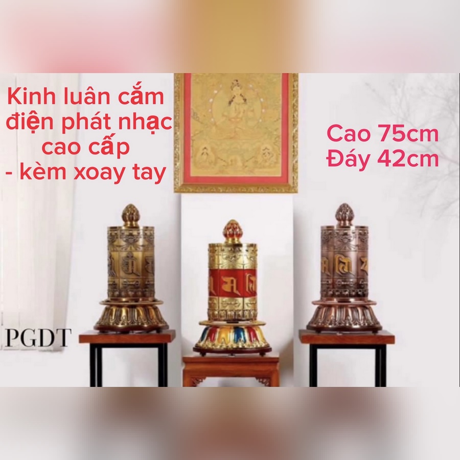 - loại cao cấp, chất lượng rất tốt, bền, âm thanh hay. Cắm điện phát nhạc, trong máy có sẵn nhiều bài nhạc chú, ngoài ra có thể cắm thêm usb rất nhiều bài nhạc thần chú hay và nhiều lợi lạc. Tích hợp xoay tay cơ học để thực hành trì chú xoay Kinh Luân.