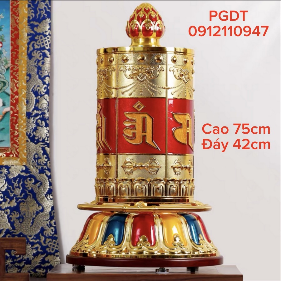 - chất liệu: hợp kim nạm men ngọc, cuộn Kinh giấy