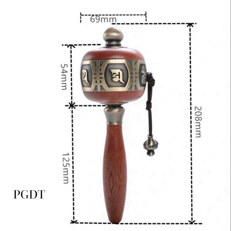 - cuộn Kinh bằng giấy in thần chú Omanipadmehums bằng chữ Tạng, hoặc có thể thay thế cuộn kinh bằng microfilm với các thần chú khác theo yêu cầu (chú Green Tara, Liên Hoa Sinh, Kim cang tát đoả, Dược Sư, Dzambala, Văn Thù ...)