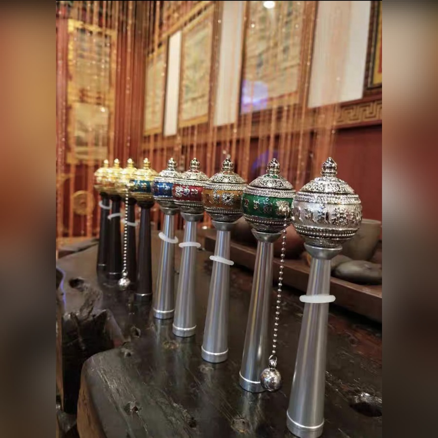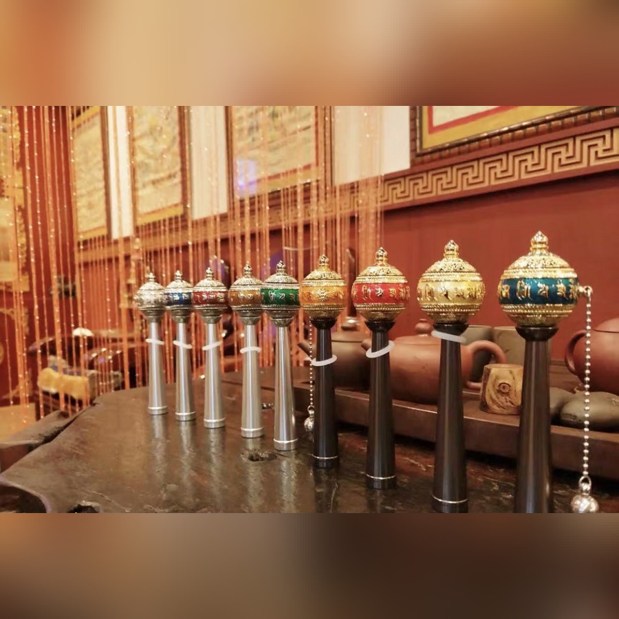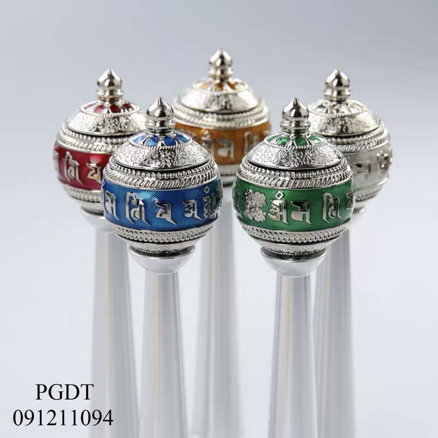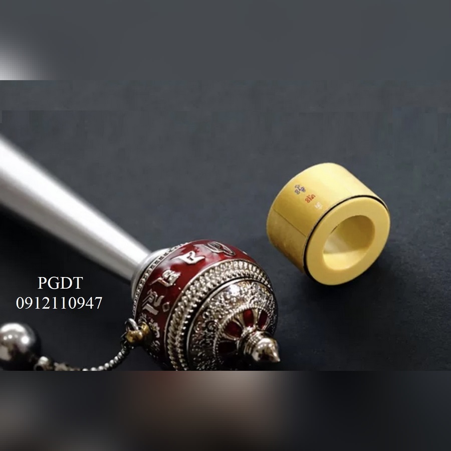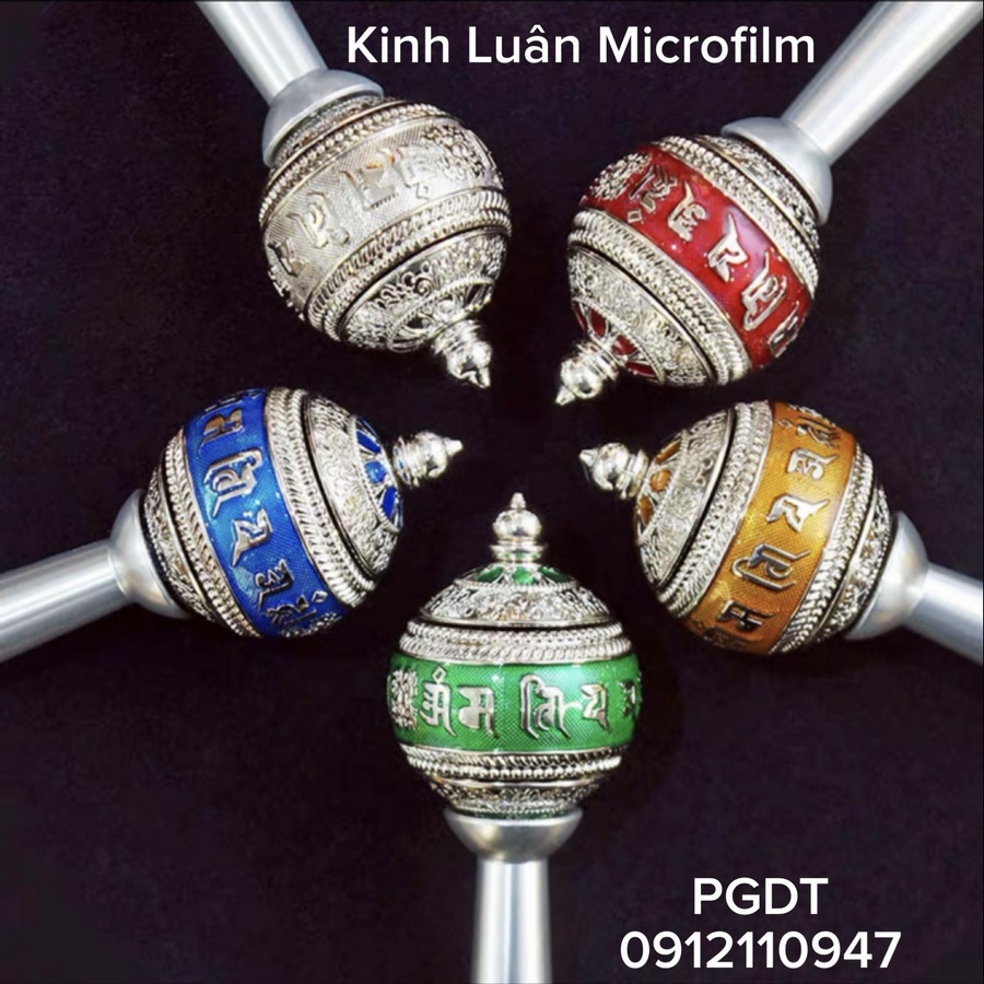 - bên trong có cuộn Kinh Chú bằng microfilm công nghệ cao đặc biệt, chữ Tây Tạng :