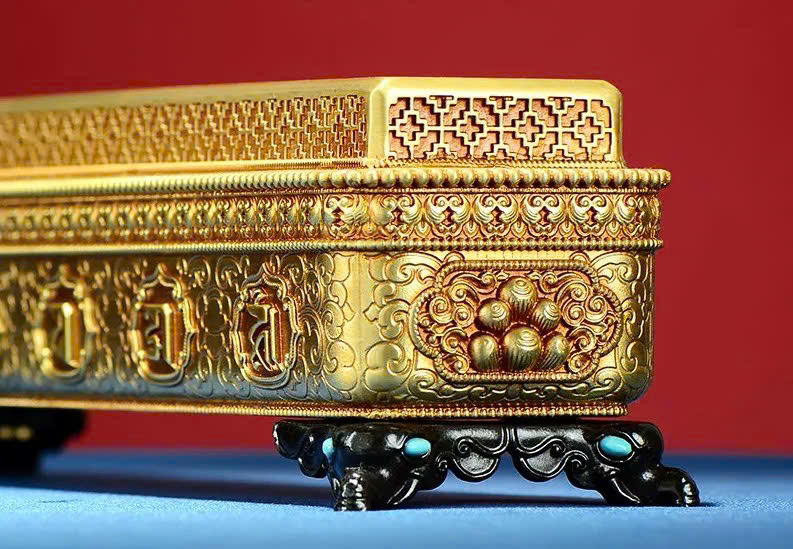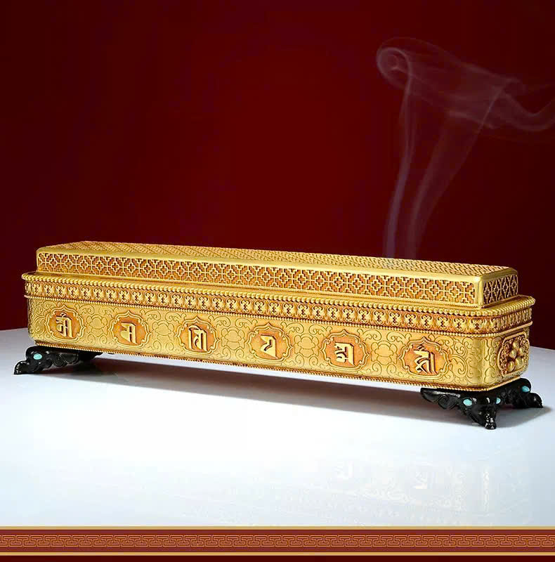 Lư hương truyền thống tây tạng khắc nổi Bát Kiết Tường và thần chú Omanipadmehums dài 30 cm