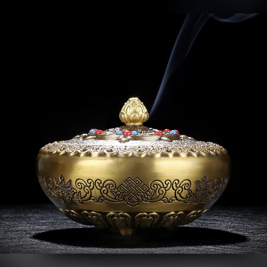 Lư trầm Bình Bát khắc hoa văn Tám Tướng Cát Tường