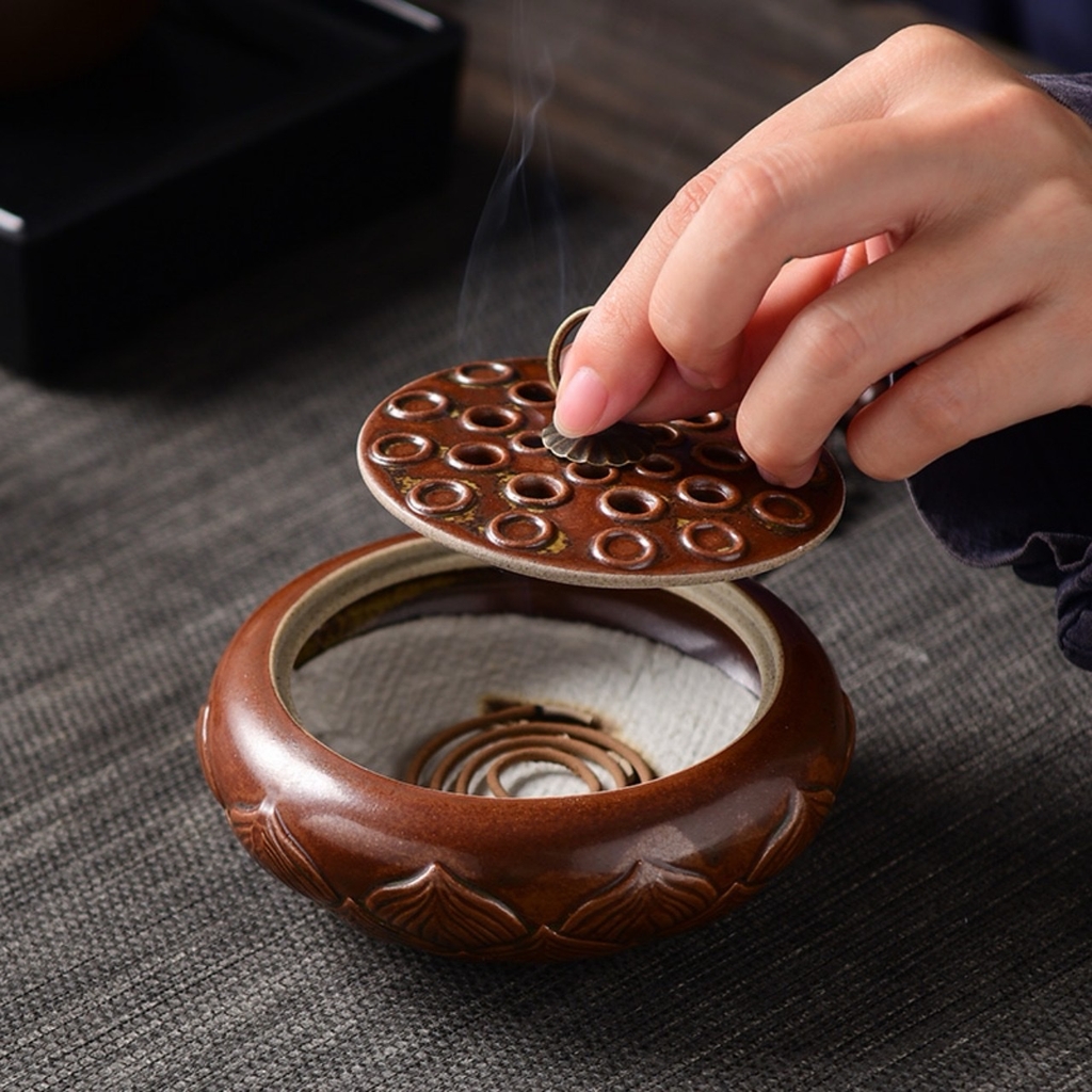 Lư trầm gốm Đài Sen (kiểu cánh đơn)