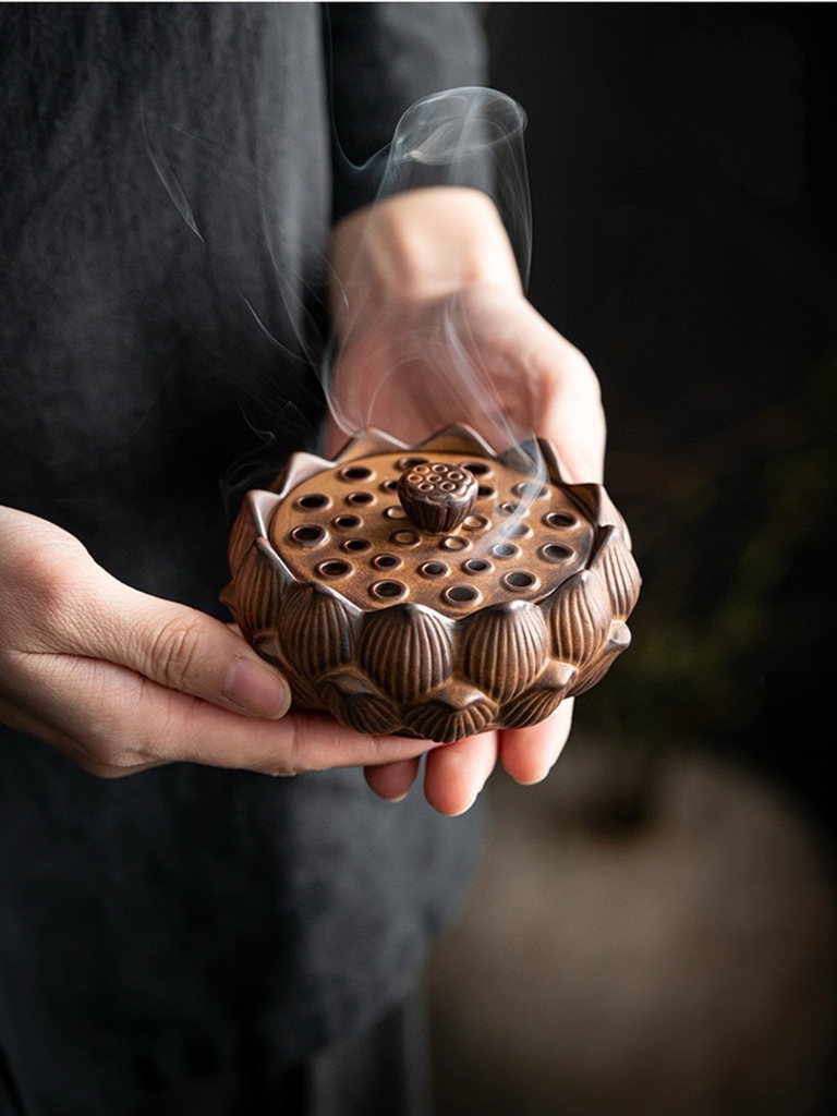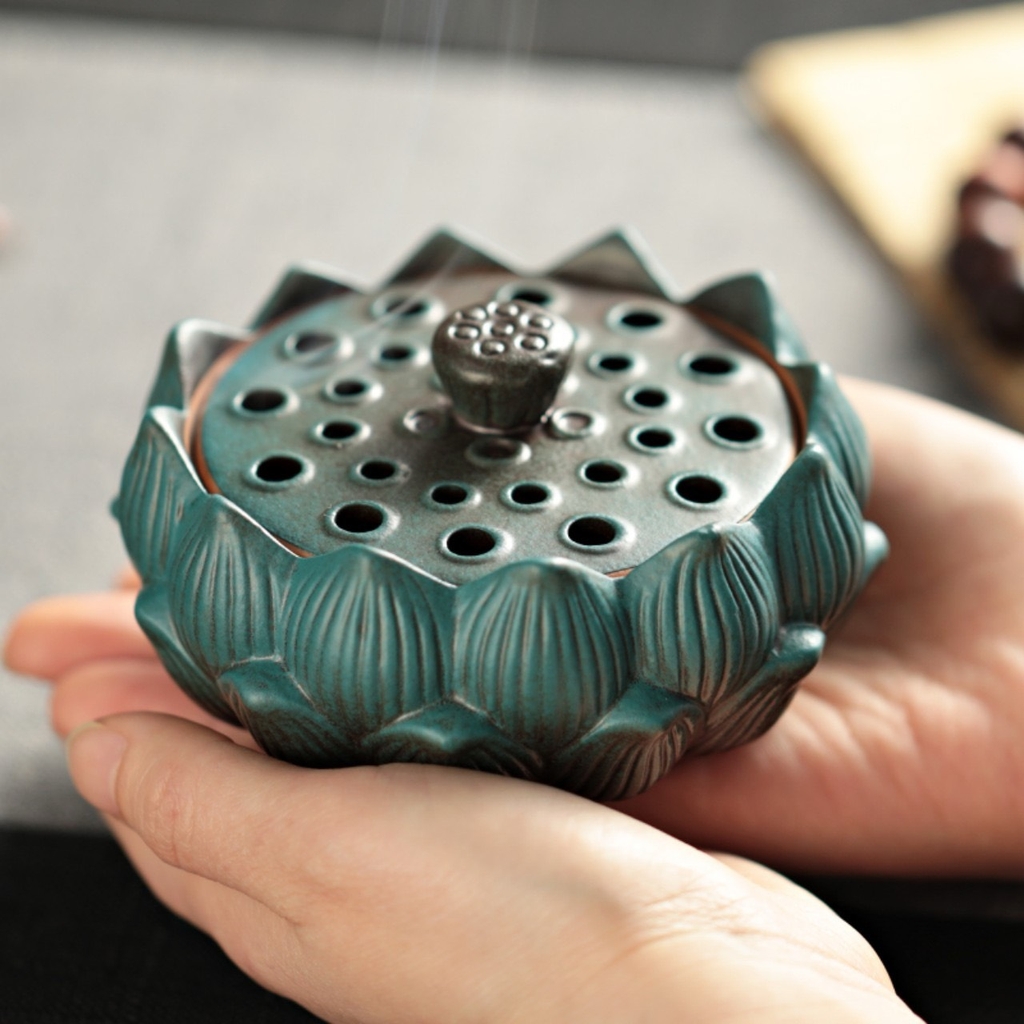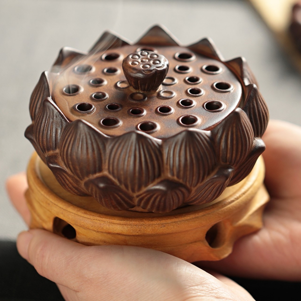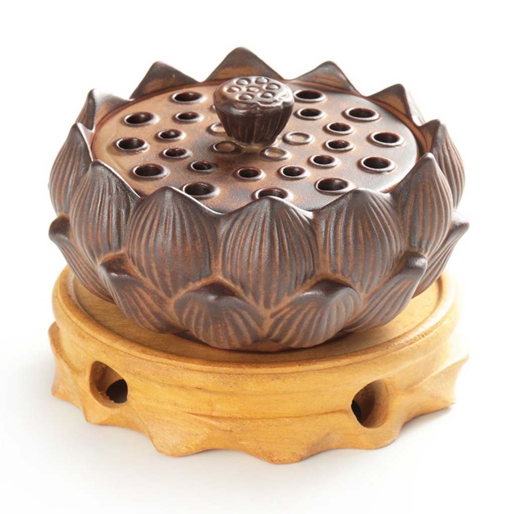 Lư trầm gốm Đài Sen (kiểu cánh kép)