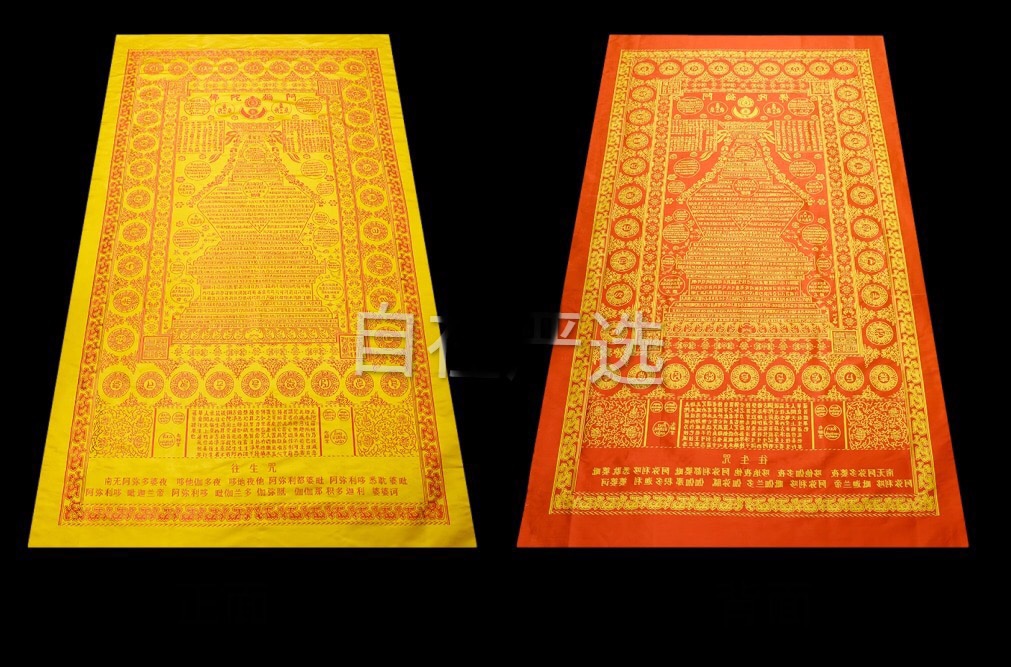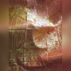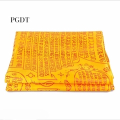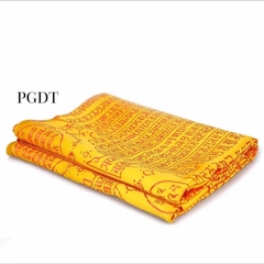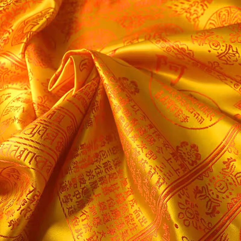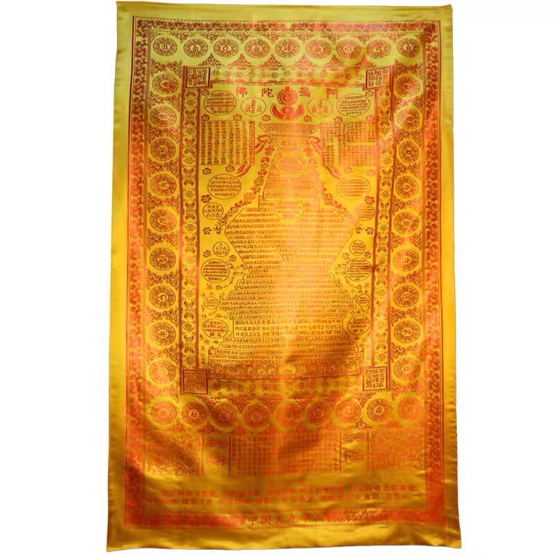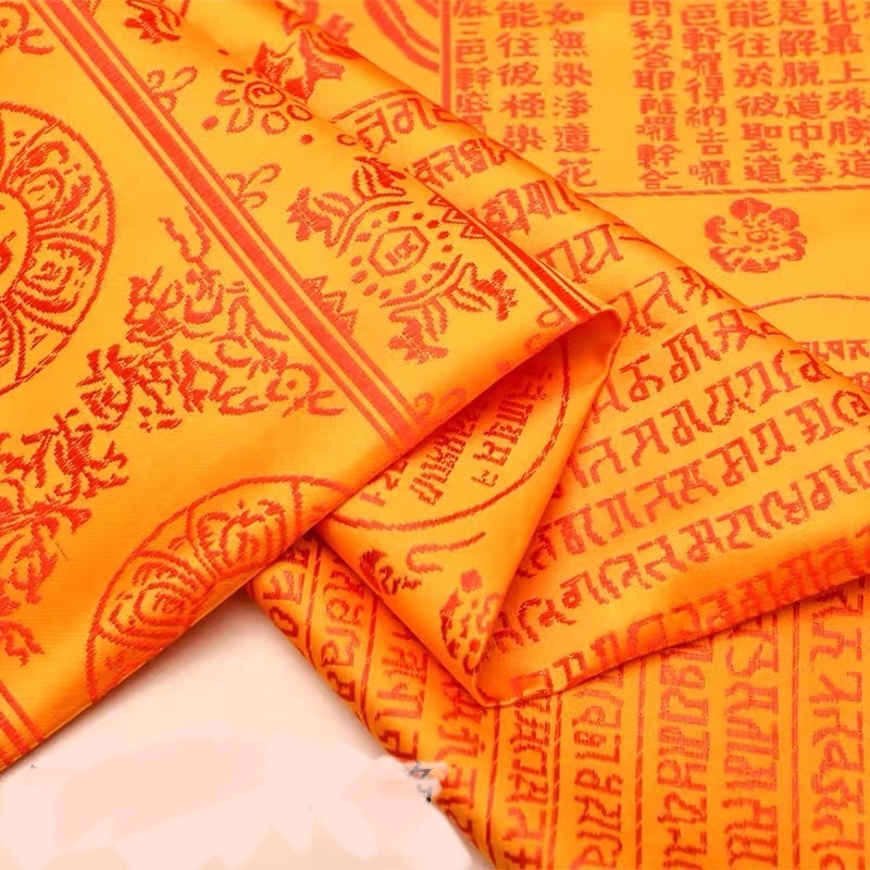- kt: khoảng 200cm x 120cm , vải lụa bóng mềm mại thêu dệt chữ Kinh văn bằng chữ Phạn và chữ Hoa.