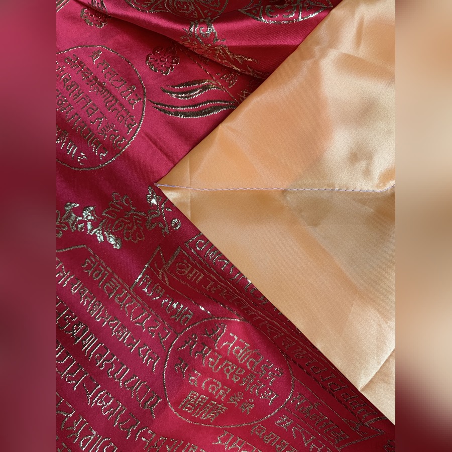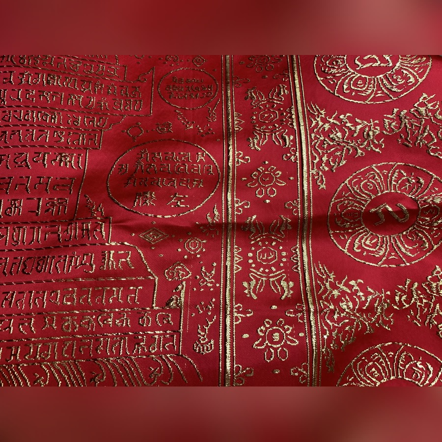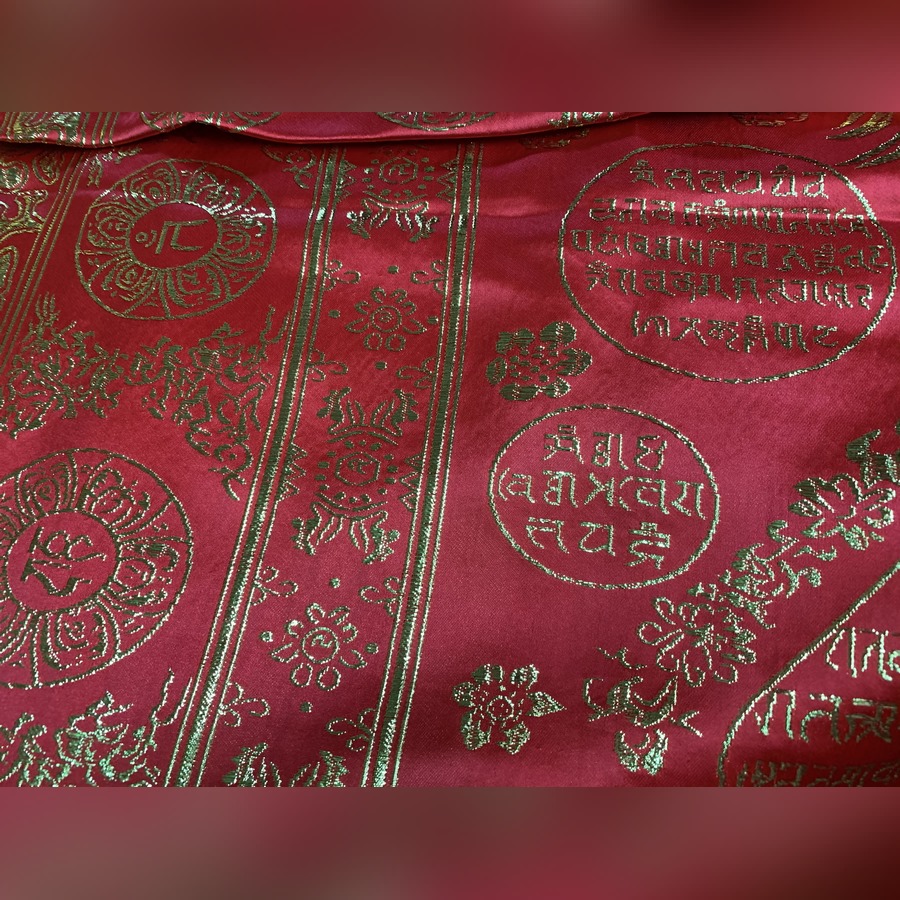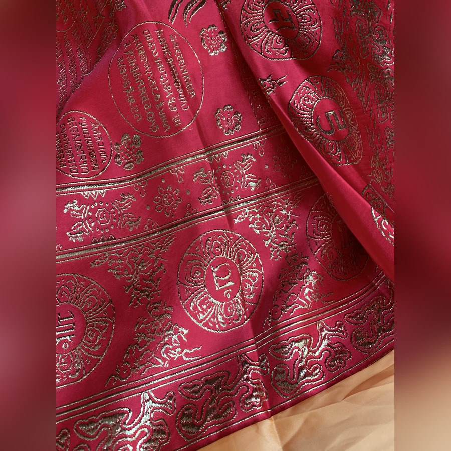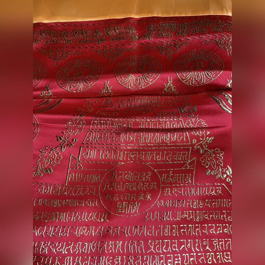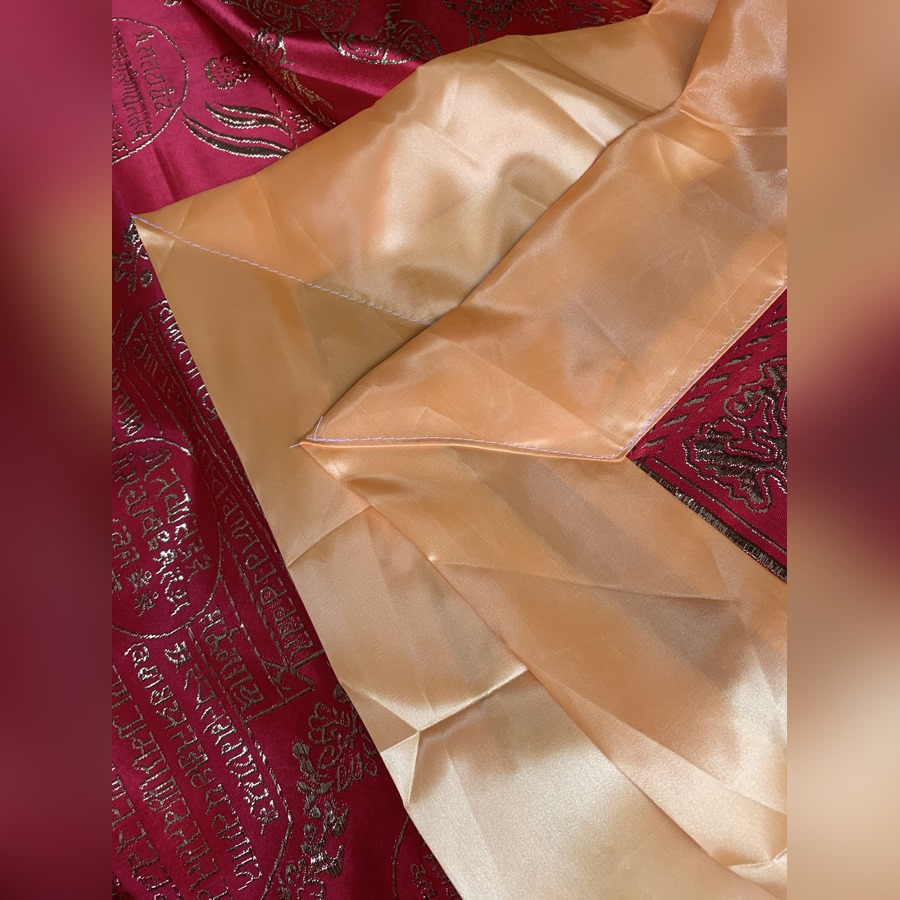 - kt: 2.25mx1.4m, vải lụa bóng mềm mại thêu nổi chữ Kinh văn bằng chữ Phạn và chữ Hoa. Viền may tỉ mỉ , gồm 2 lớp