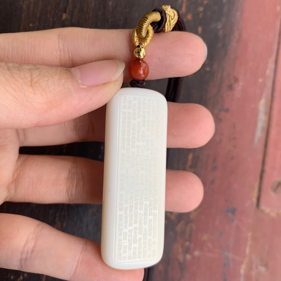 Mặt ngọc Hoà Điền màu trắng ngà khắc Bát Nhã Tâm Kinh