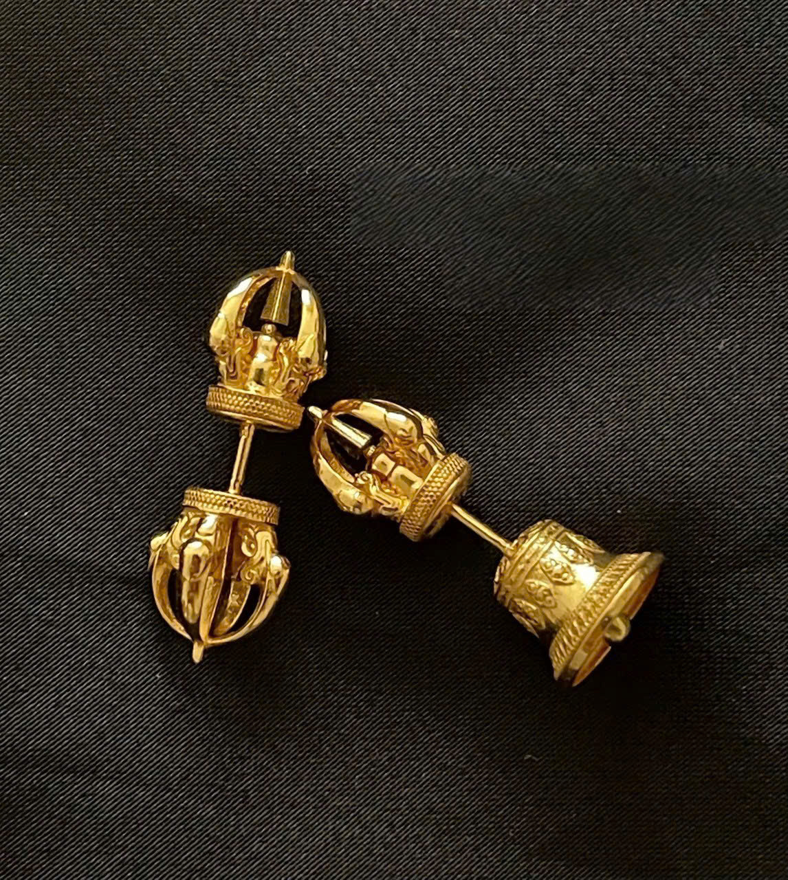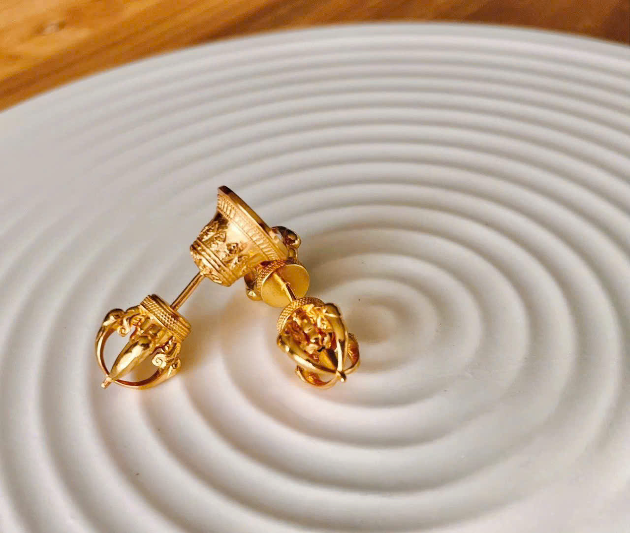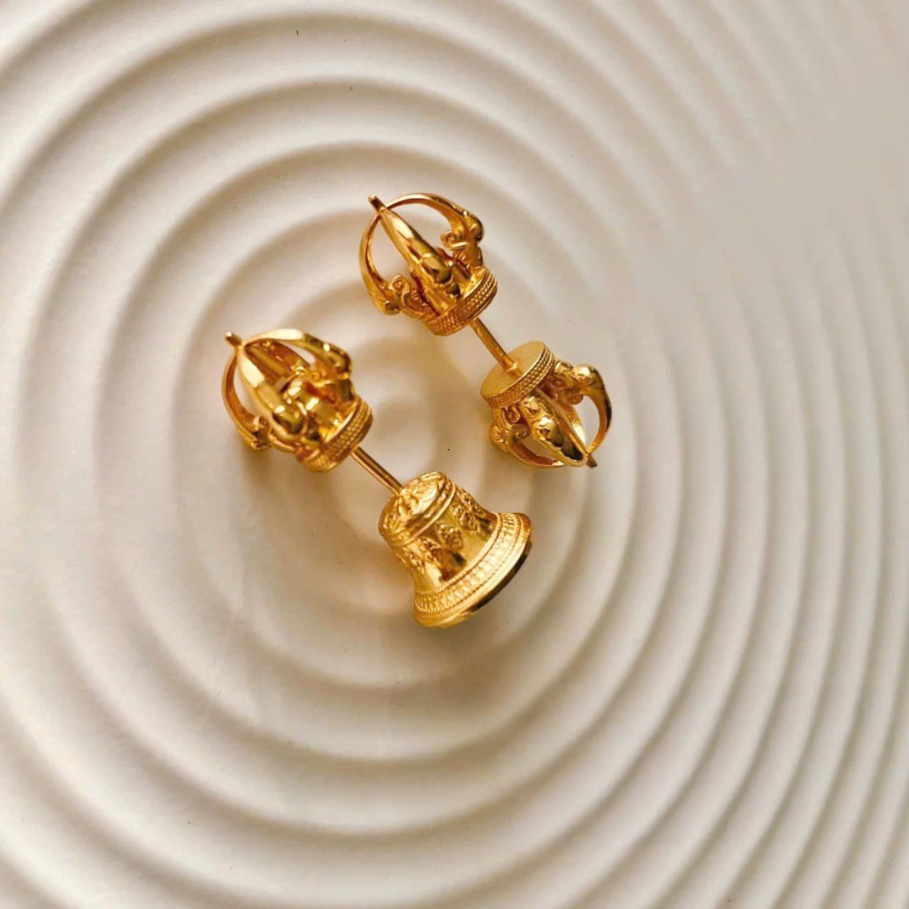 Order khuyên tai Chuông Chày Kim Cang bằng bạc 925 mạ vàng 5 lớp