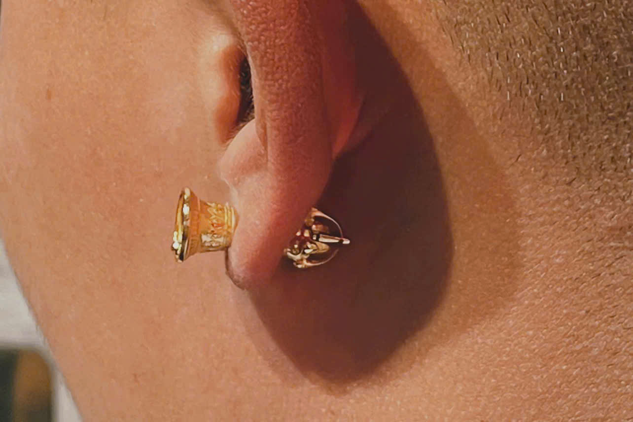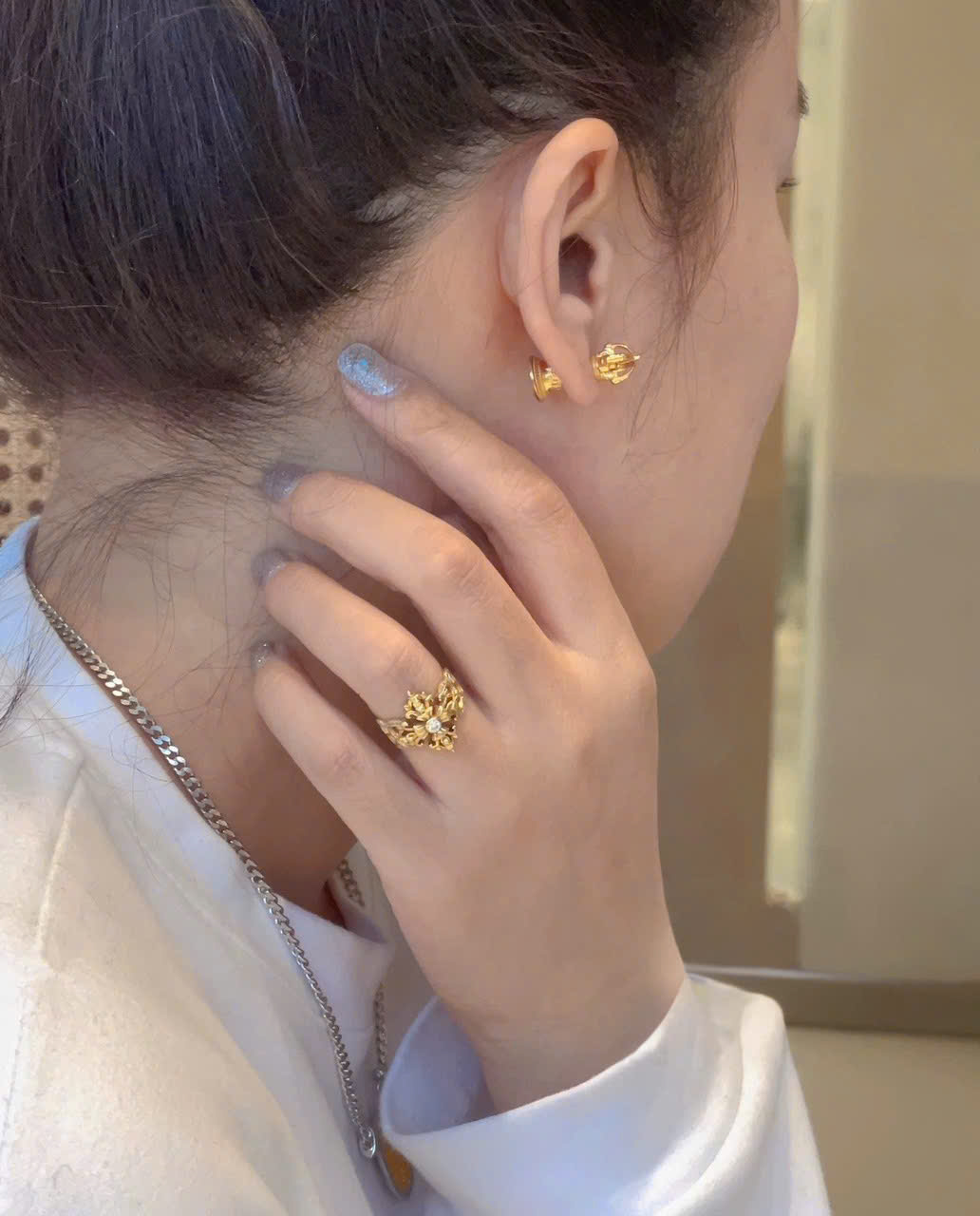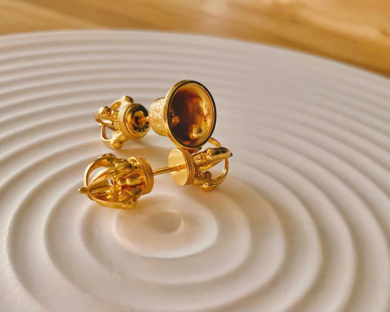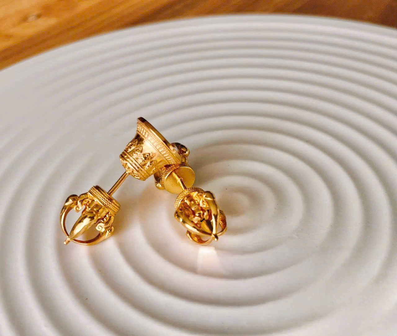 Order khuyên tai Chuông Chày Kim Cang bằng bạc 925 mạ vàng 5 lớp