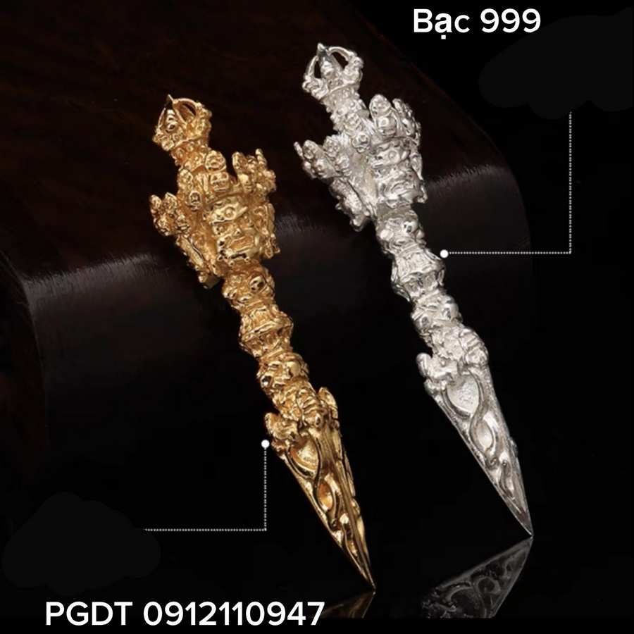 Đao phurba - kim cang phổ ba bằng bạc cỡ bé