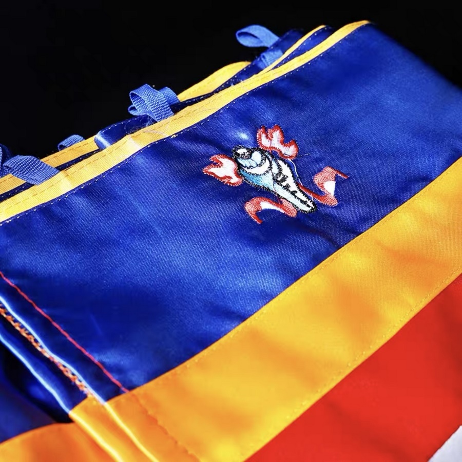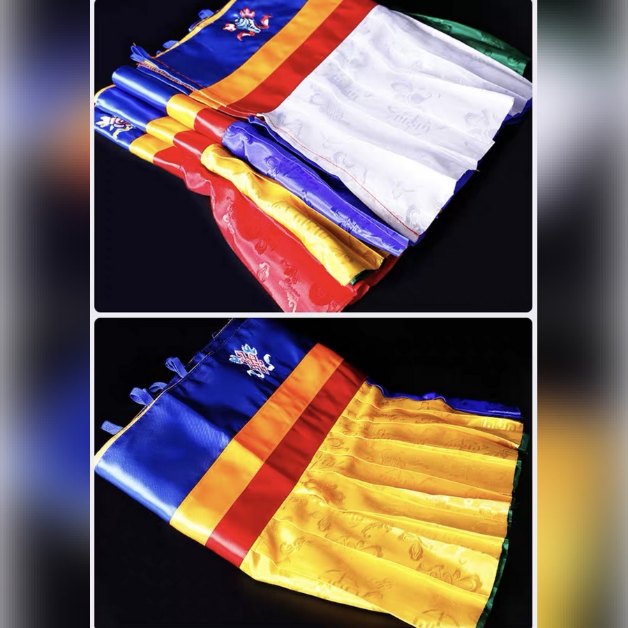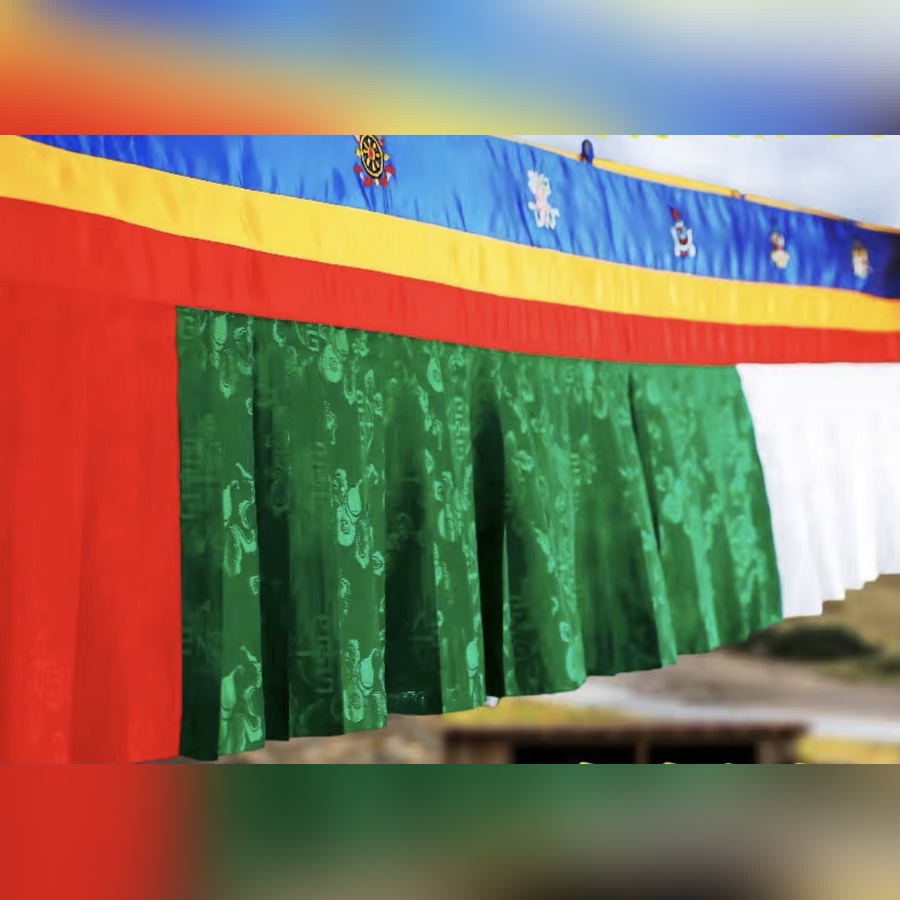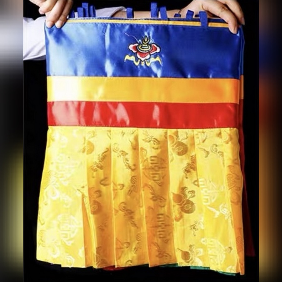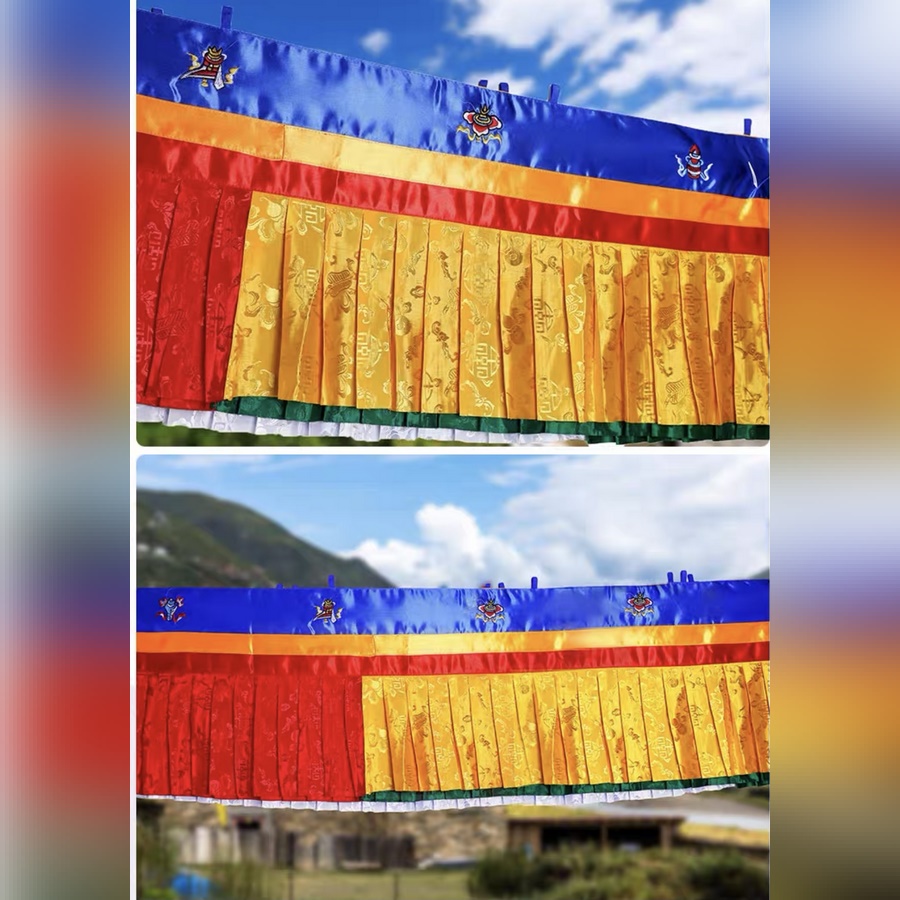 Rèm quây bàn thờ và trần nhà thêu 8 biểu tượng cát tường giúp trang hoàng bàn thờ và phòng thờ thêm trang nghiêm và ấm cúng ạ.