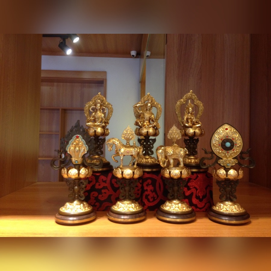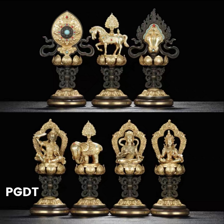 Tương truyền, chúng đại biểu cho sự cát tường trong vũ trụ khi Chuyển Luân Vương giáng thế. Ngài dựa vào bảy loại pháp bảo này có thể hàng phục ma chướng, chinh phục tất cả, là người thống trị thế tục và tinh thần.