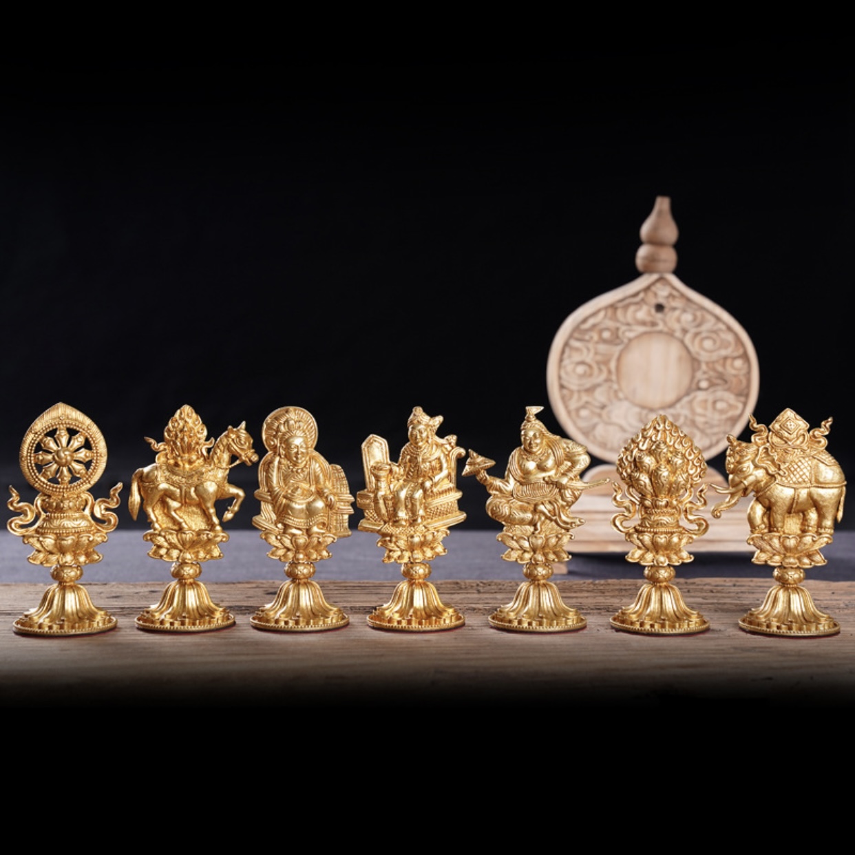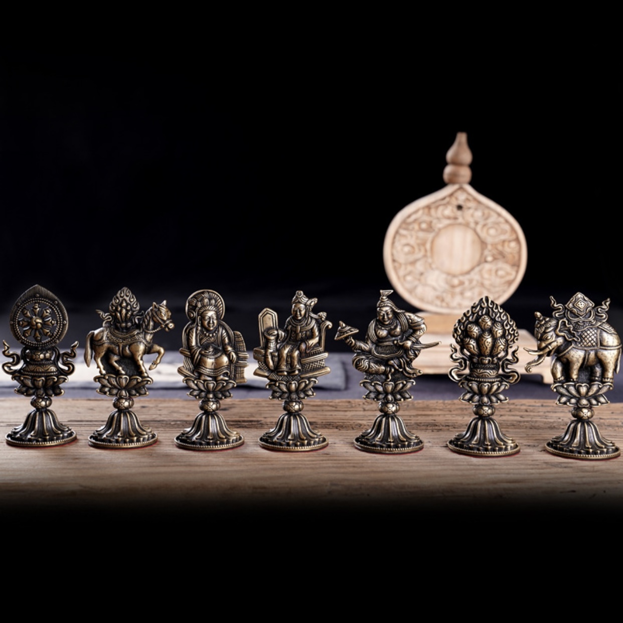 Tương truyền, chúng đại biểu cho sự cát tường trong vũ trụ khi Chuyển Luân Vương giáng thế. Ngài dựa vào bảy loại pháp bảo này có thể hàng phục ma chướng, chinh phục tất cả, là người thống trị thế tục và tinh thần.