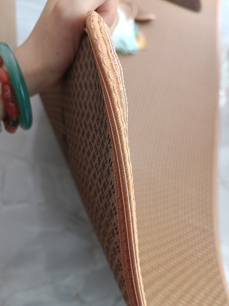 - thảm/Chiếu lớn 60cmx 2,3 mét: may nhiều lớp dày, ở giữa lót mút nên rất êm, bề mặt trên trơn láng mát lạnh, tiếp xúc dễ chịu. Mặt tiếp sàn ráp ráp chống trượt