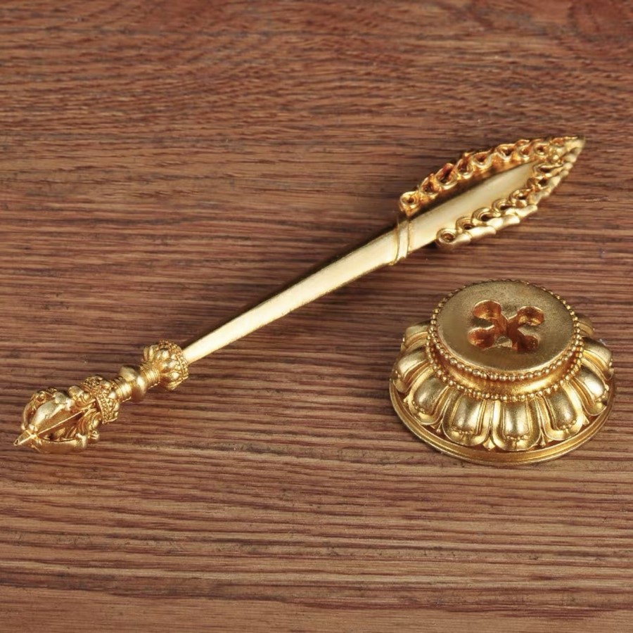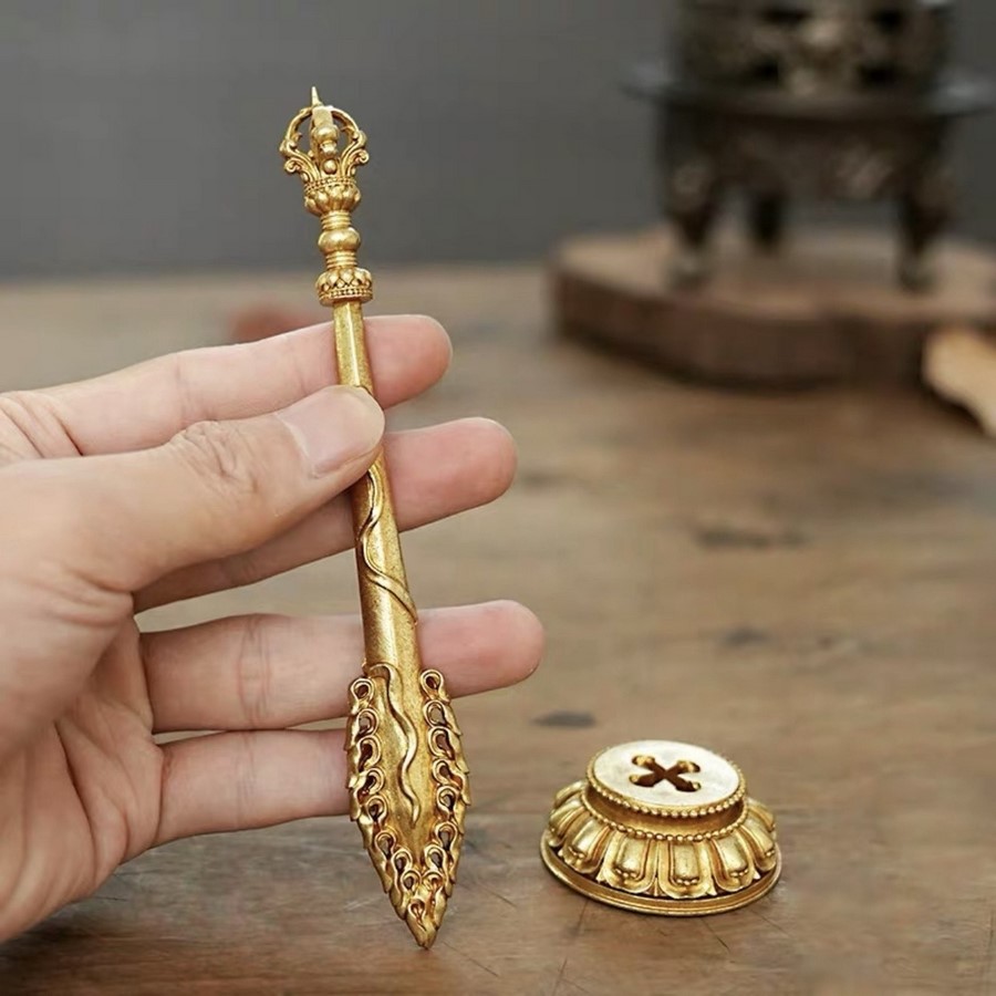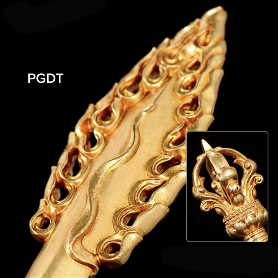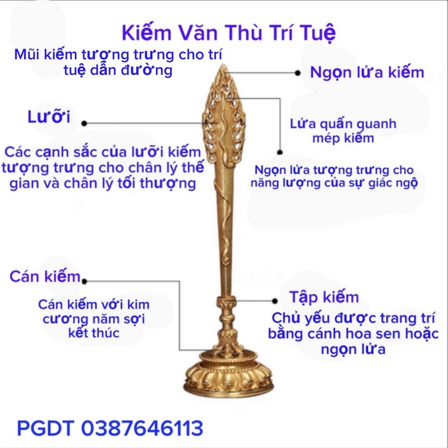 - Tượng trưng cho trí tuệ dẫn đường với Ngọn Lửa Giác Ngộ quấn quanh. Lưỡi kiếm sắc bén chặt đứt vô minh, cạnh sắc trên thân kiếm tượng trưng cho chân lý thế gian và chân lý tối thượng.