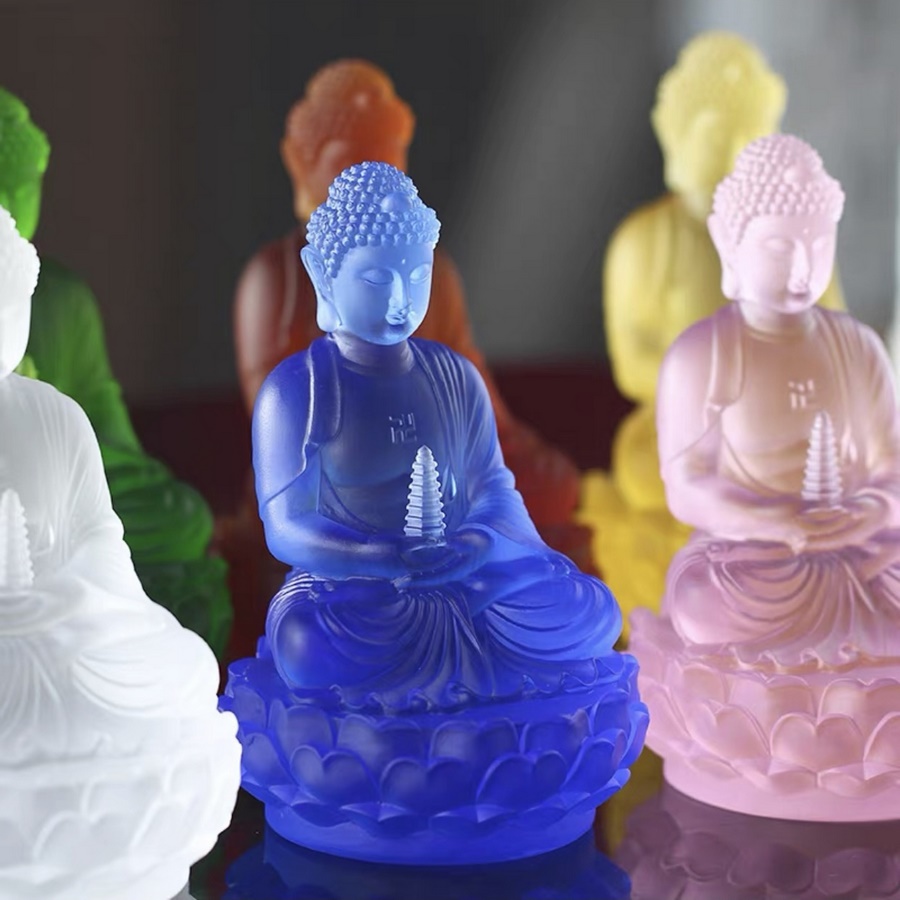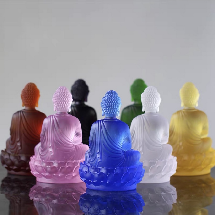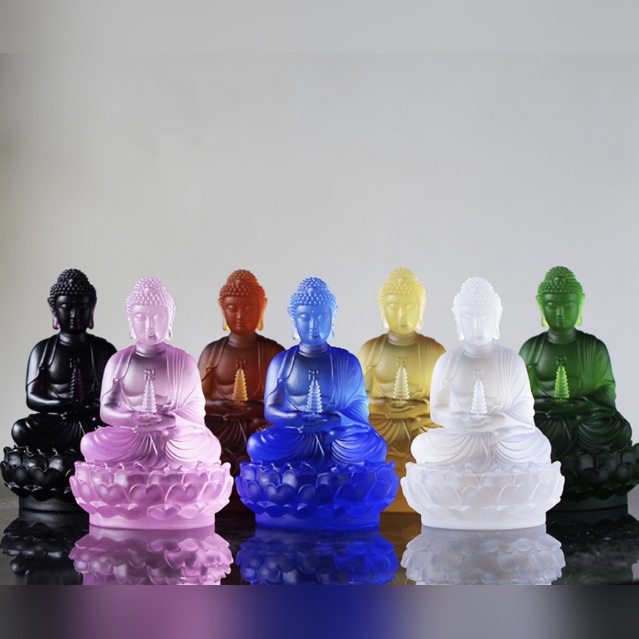 NAM MÔ DƯỢC SƯ LƯU LY QUANG NHƯ LAI NHƯ LAI (trong 7 Đức Phật Dược Sư) , nơi còi thế giới tên là Tịnh Lưu Ly Thế giới. Toàn thân màu xanh ngọc lưu ly, tay phải kết Thí Nguyện ấn cầm quả A Lỗ Lạt, tay trái kết Chánh Định ấn.