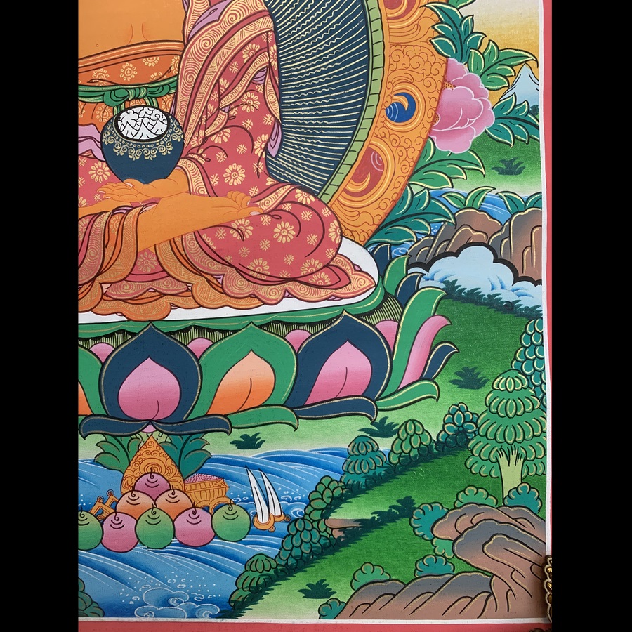 Tượng Phật Thích Ca ngự trên đài sen là một ý nghĩa tượng trưng siêu thực. Bởi vì hoa sen được biểu thị cho đức tánh thanh tịnh và giải thoát. Hoa sen phát xuất trong lòng vũng bùn nhơ nhớp, mà vẫn tỏa ra mùi hương thanh khiết. Đó là đặc tính không thể tìm được trong các loài hoa khác. Nằm giữa vũng bùn nhơ nhớp, mà không bị lây nhiễm mùi hôi hám, trái lại còn đầy đủ hương vị thơm tho, đó mới thật là thanh tịnh. Vì cái thanh tịnh ngay giữa chỗ ô uế, mới chơn thật thanh tịnh. Nếu hoa sen mọc giữa bãi cát trắng phau, hay trên gò đất khô sạch sẽ, dầu có hương sắc gấp mấy lần hơn vẫn không được quý trọng. Bởi nó chui từ vũng bùn hôi hám mà lên, lại giữ được tánh cách thanh khiết.