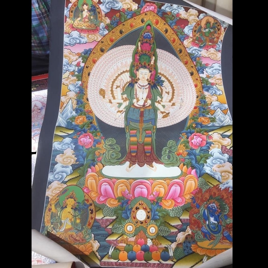 Tranh thangka vẽ tay Nepal: Thiên Thủ Thập Nhất Diện (A1)