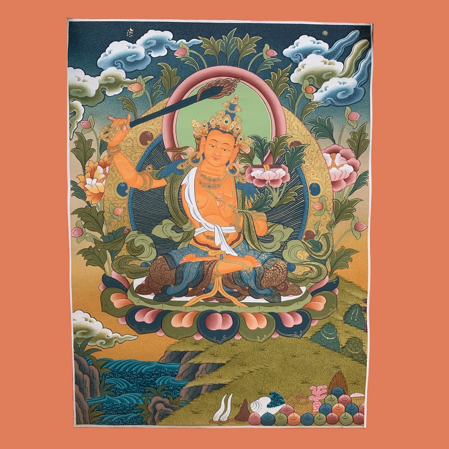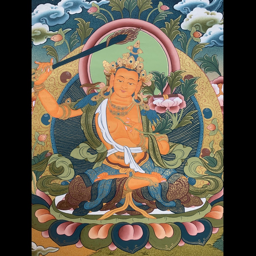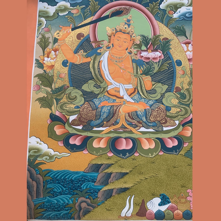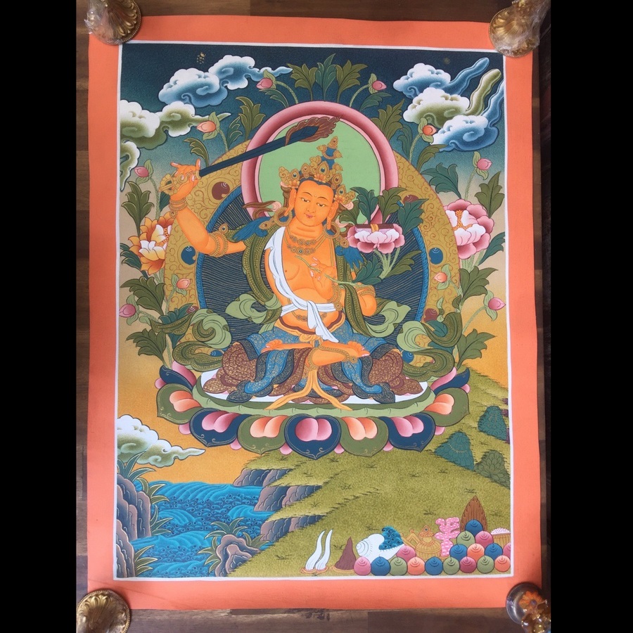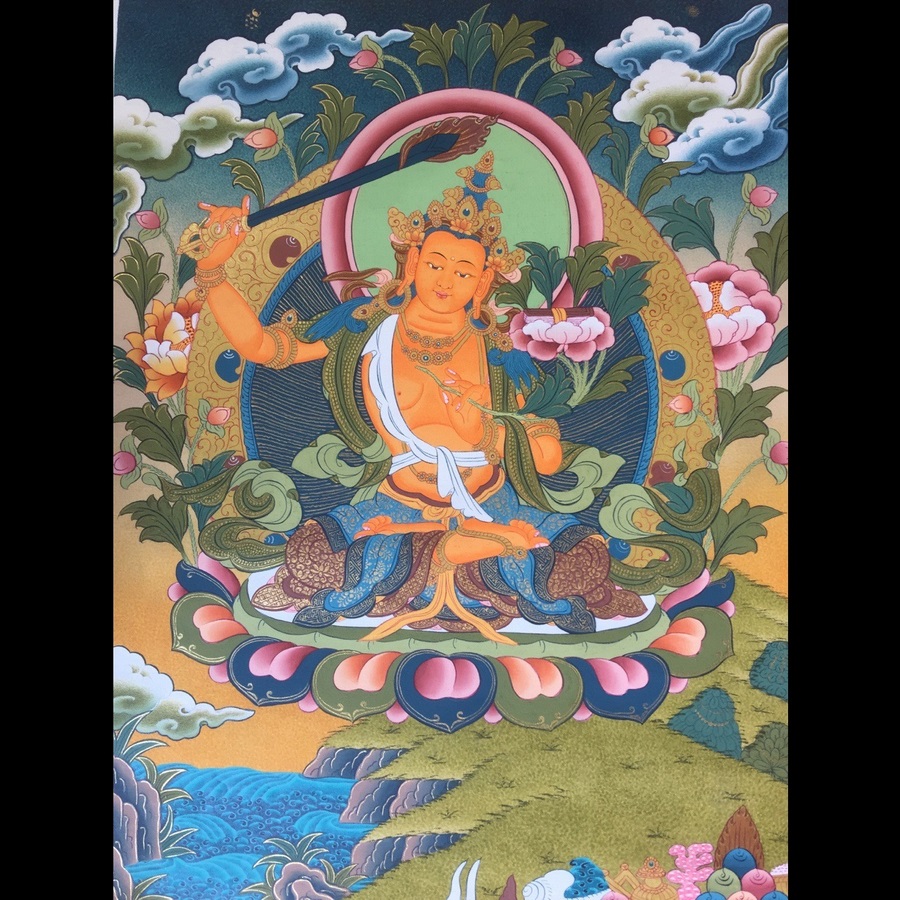 Tranh thangka vẽ tay Văn Thù Sư Lợi Bồ Tát (A2)