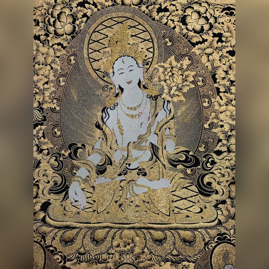 Ngài White Tara Bạch Độ mẫu là hóa thân của Đức Phật Amitayus, Đức Phật Trường Thọ. Ngài được sinh ra từ một trong hai giọt nươc mắt bi phẫn của Đức Phật Quan Âm để phổ độ chúng sinh, trong Kinh điển Đại thừa nghĩa là Bồ Tát Đa La hay còn được gọi là Đức Quan Âm tướng nữ.